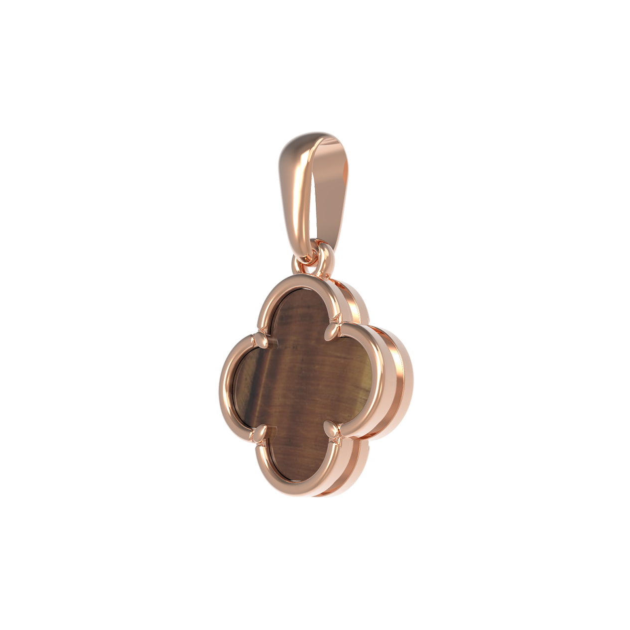 Элегантная подвеска из красного золота 585 пробы станет утонченным дополнением вашего образа. Это изделие, представленное в коллекции De Luxe — Клевер весна, отличается лаконичным и узнаваемым дизайном в форме клевера, который считается символом гармонии и успеха. Центром композиции является натуральный тигровый глаз, привлекающий внимание своим теплым оранжевым оттенком и уникальной природной игрой света.