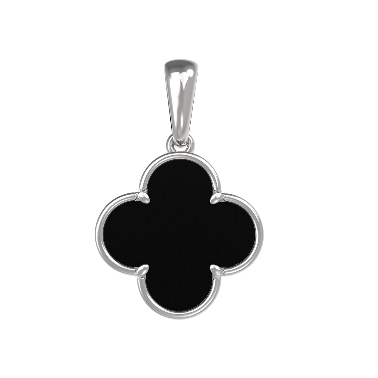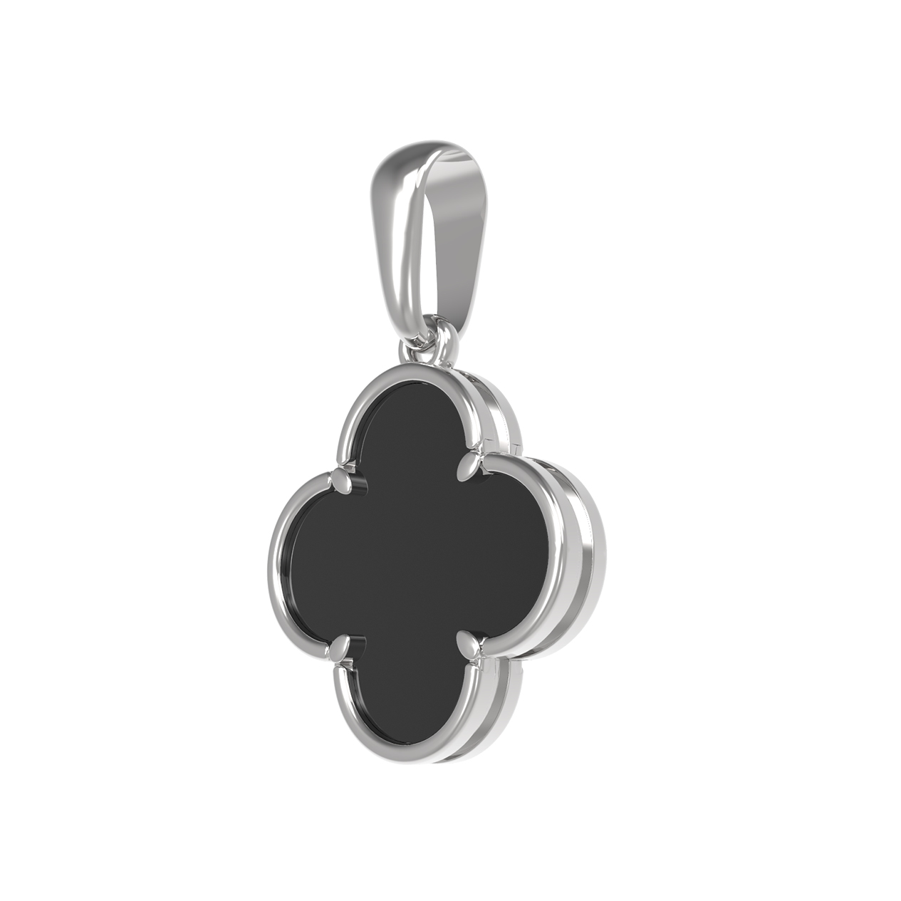 Элегантная подвеска из белого золота 585 пробы станет утонченным акцентом вашего образа. Дизайн в форме клевера подчеркивает лаконичность и благородство линий, а глубокий черный цвет вставки из оникса создает эффектный контраст с холодным блеском драгоценного металла. Это украшение органично вписывается как в строгий деловой стиль, так и в вечерний наряд, добавляя нотку роскоши и завершенности.