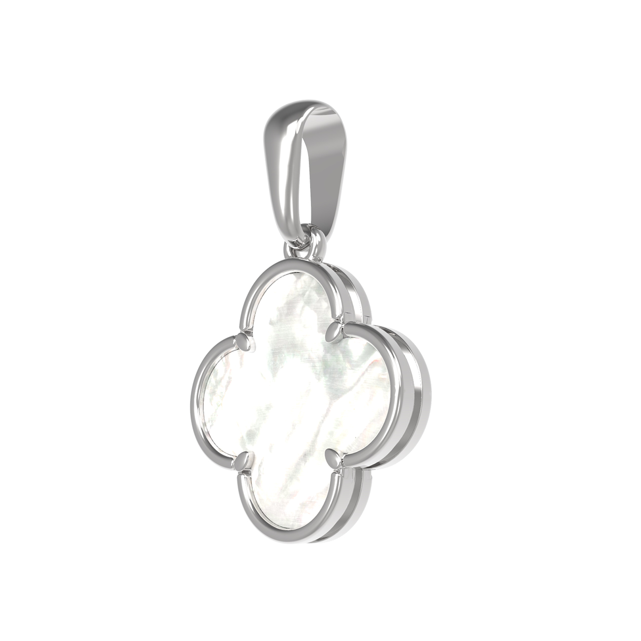 Изящная подвеска из белого золота 585 пробы из коллекции De Luxe — Клевер весна станет воплощением вашего безупречного вкуса. Дизайн в форме клевера — это классический символ удачи и гармонии, который обретает новое прочтение в благородном металле холодного оттенка. Лаконичная оправа подчеркивает природную красоту вставки из натурального перламутра, чье мягкое, переливающееся свечение придает украшению особую глубину и выразительность. Белый цвет материала гармонично сочетается с нежностью перламутровых вставок, создавая элегантный контраст.