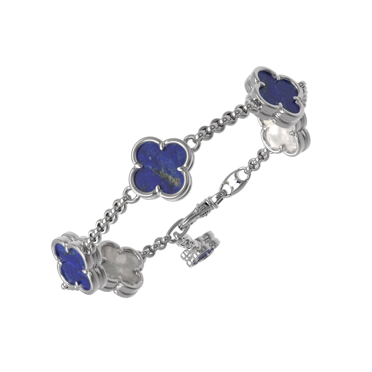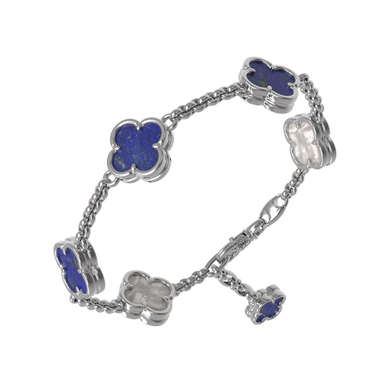 Это ювелирное изделие — идеальный выбор для тех, кто ценит эстетику натуральных камней и надежность белого золота. Закажите изысканный браслет с лазуритом и перламутром, чтобы добавить ноту роскоши в ваш повседневный или вечерний стиль.