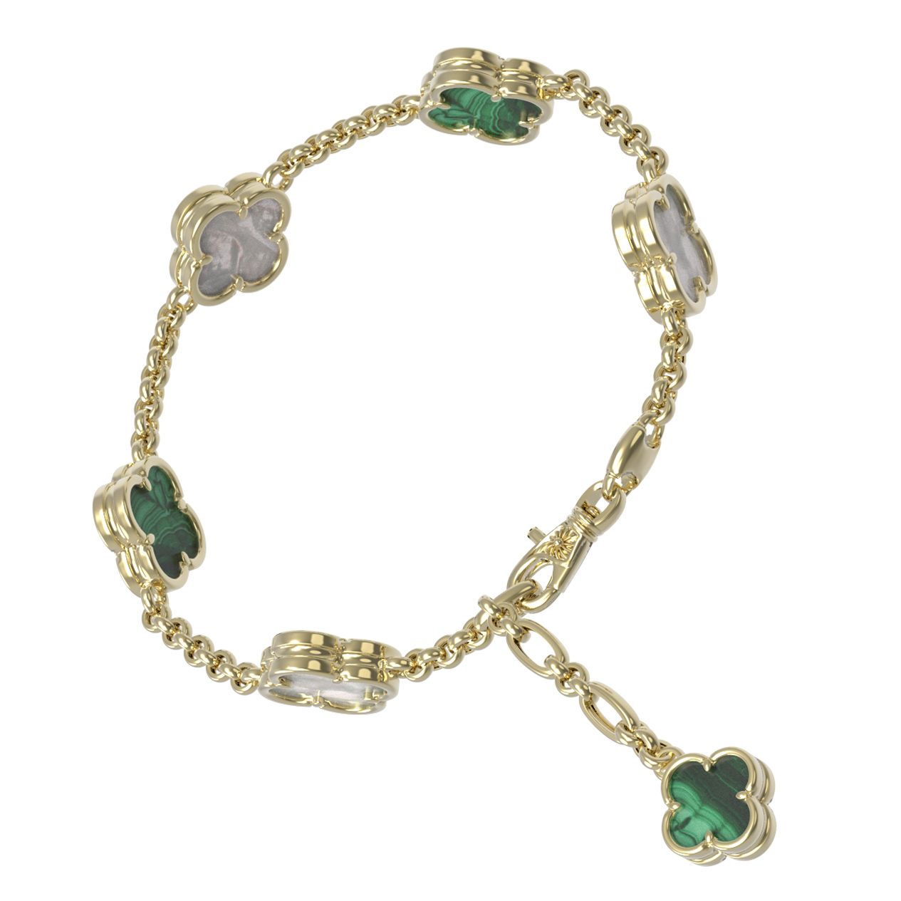 Браслет из лимонного золота c малахитом и перламутром