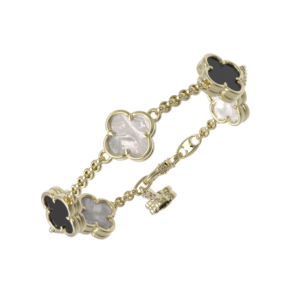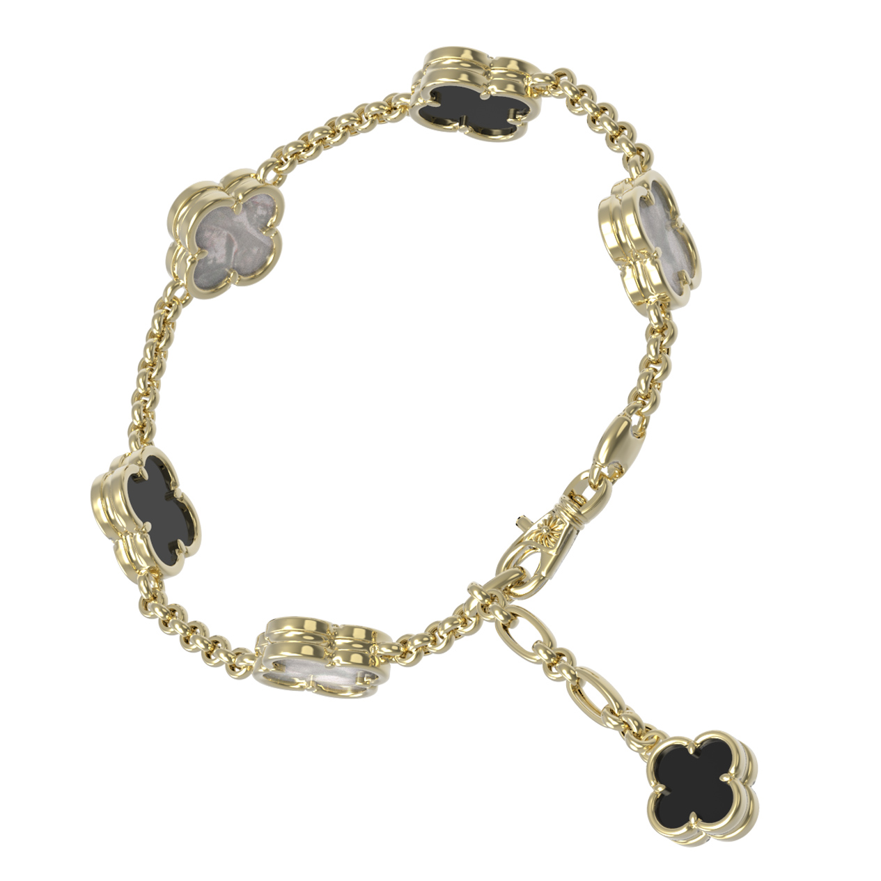 Изящное переплетение звеньев цепочки в сочетании с природной красотой камней делает данный браслет выразительным украшением. Если вы подбираете особенный подарок или хотите дополнить свою коллекцию качественных аксессуаров, это изделие из лимонного золота станет отличным выбором. Изысканный силуэт клевера привносит нотки классики, актуальной во все времена. Этот браслет прекрасно смотрится как самостоятельный аксессуар, так и в сочетании с другими элементами, составляя гармоничные комплекты для любого случая.