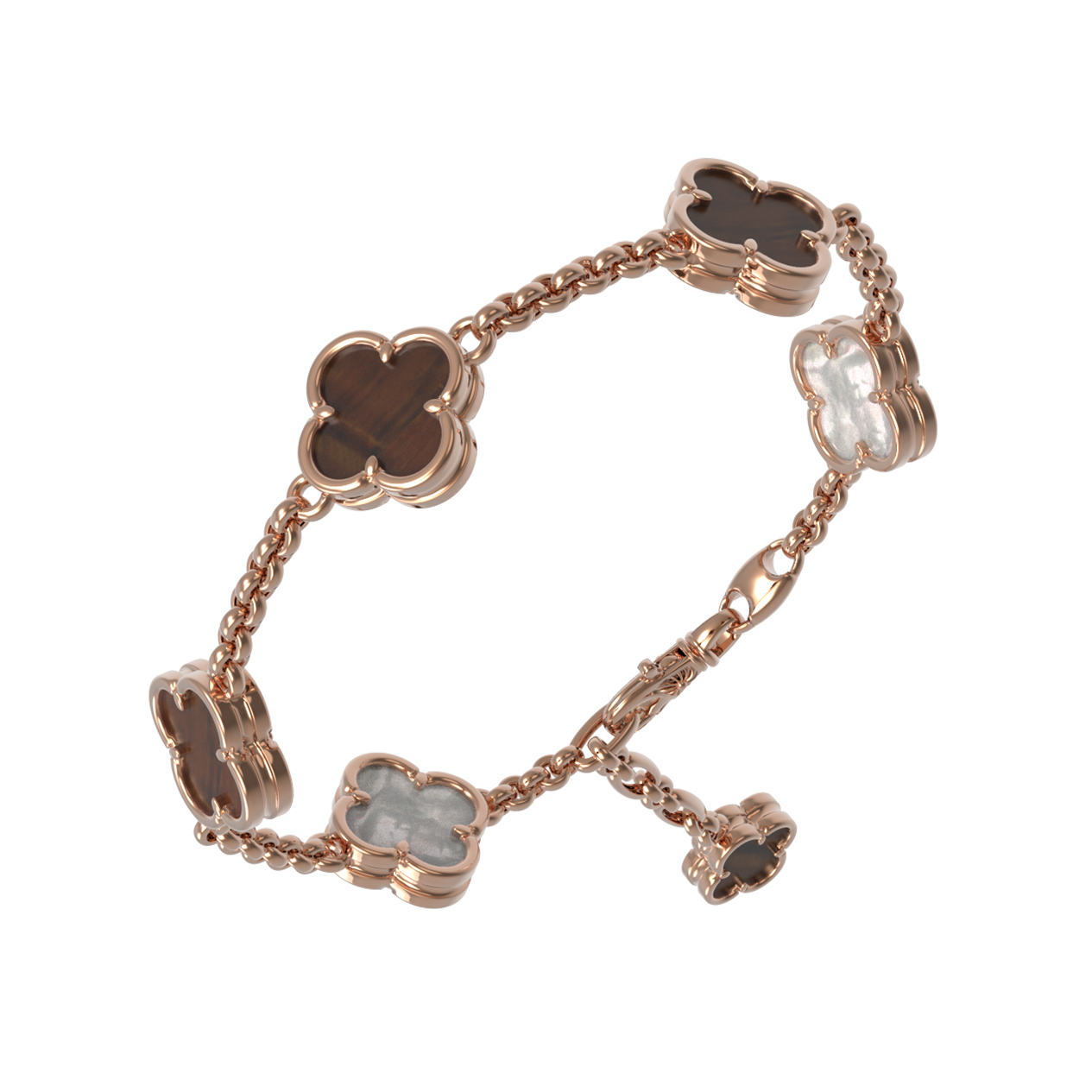 Браслет из золота c тигровым глазом и перламутром