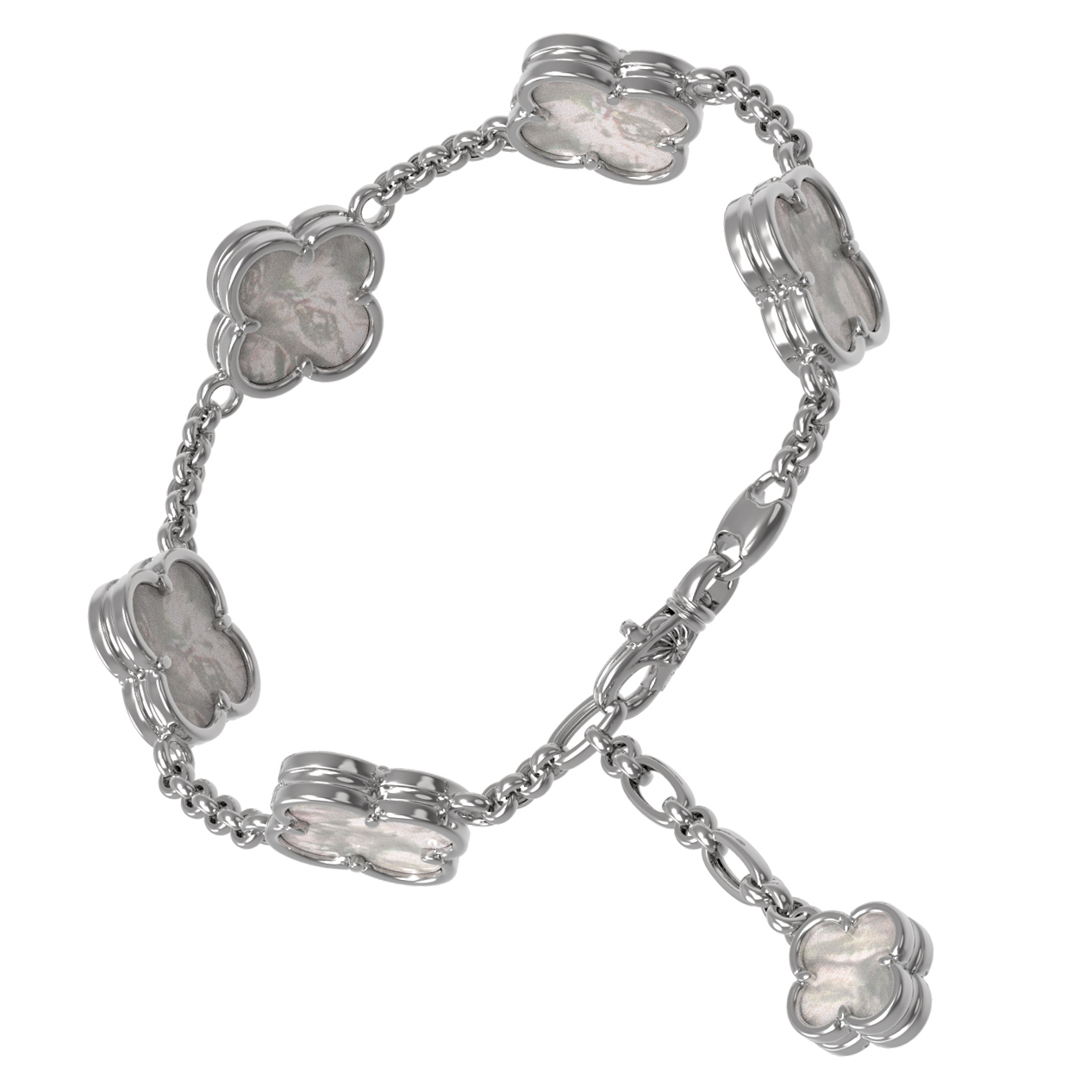 Изысканный браслет из белого золота 585 пробы — воплощение элегантности и утонченного стиля. Это украшение из коллекции De Luxe — Клевер весна станет безупречным дополнением как женского, так и мужского образа, подчеркивая статус и безупречный вкус его владельца. Дизайн изделия выполнен в популярном стиле клевер, который ассоциируется с удачей и гармонией. Центральными элементами браслета являются декоративные вставки из натурального перламутра, чей мягкий, переливающийся блеск придает изделию особое очарование и загадочность.