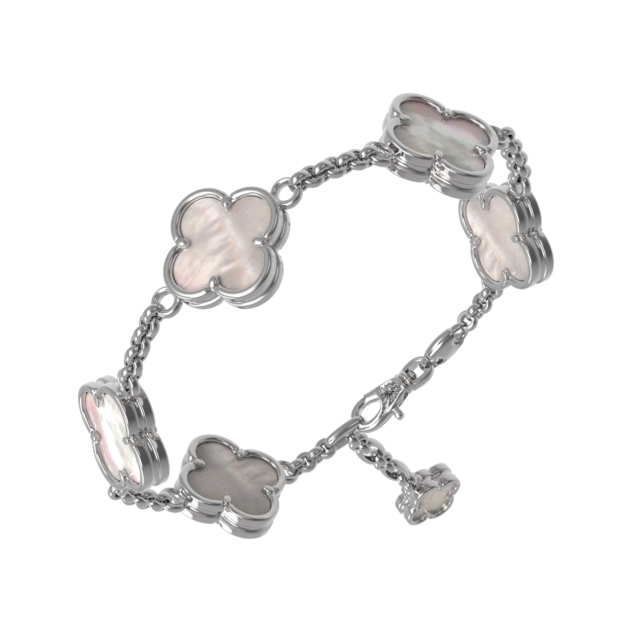 Благородный холодный оттенок белого золота идеально сочетается с нежностью перламутра, создавая гармоничную и стильную композицию. Этот браслет одинаково эффектно смотрится как самостоятельный аксессуар, так и в составе комплектов, позволяя вам создавать завершенные ювелирные ансамбли. Качественное исполнение и продуманная конструкция гарантируют комфорт при ежедневной носке, а универсальный дизайн делает его желанным украшением для каждого ценителя высокого ювелирного искусства. Выбирая данное изделие, вы отдаете предпочтение долговечности, красоте и вневременному стилю, который всегда остается актуальным.