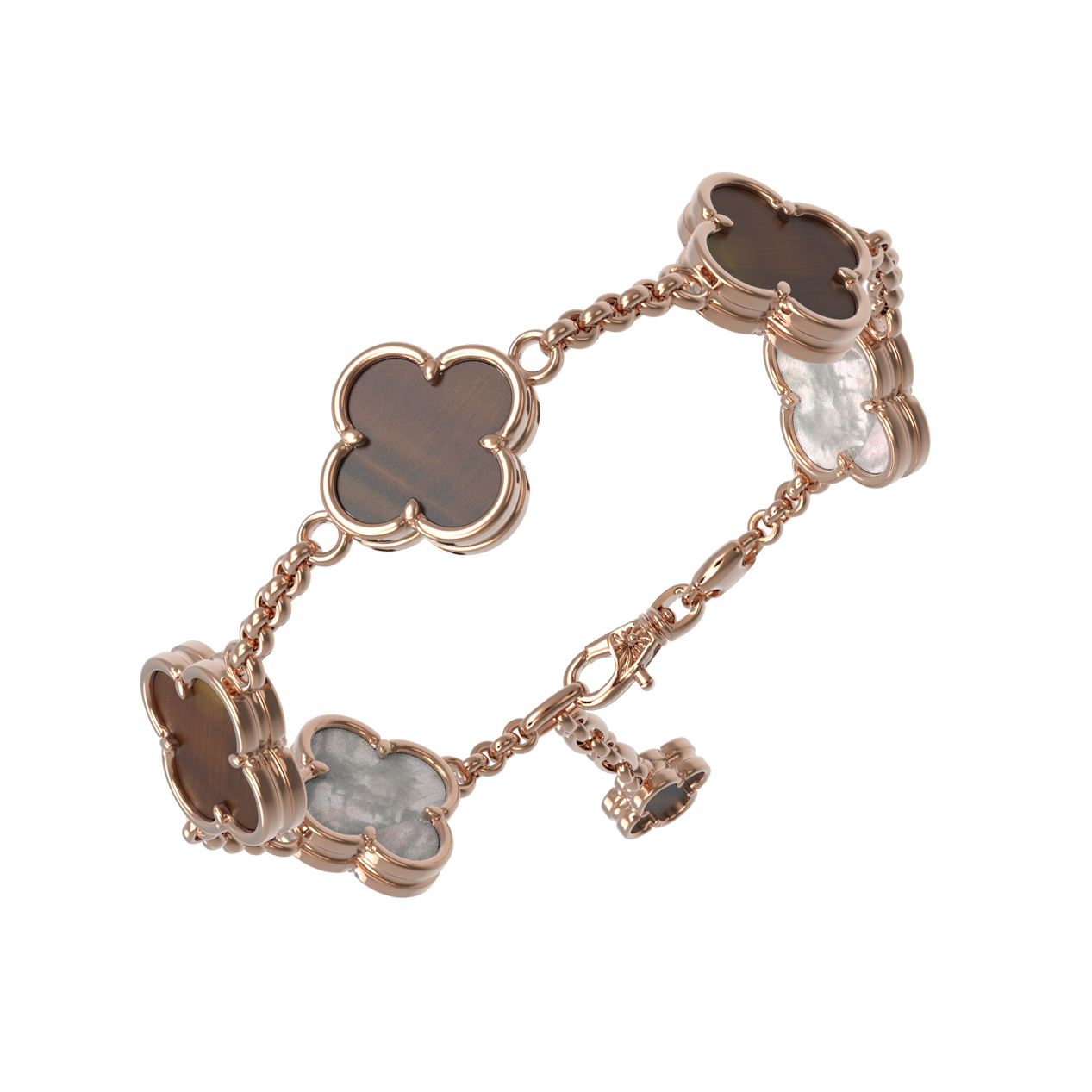 Элегантный золотой браслет из коллекции De Luxe — Клевер весна станет безупречным акцентом вашего образа, подчеркивая утонченный вкус и внимание к деталям. Это ювелирное изделие выполнено из красного золота 585 пробы, которое придает украшению теплый и благородный оттенок. Дизайн браслета основан на изящных мотивах клевера, что делает его универсальным аксессуаром, который подойдет как для женщин, так и для мужчин, ценящих статус и эстетику.