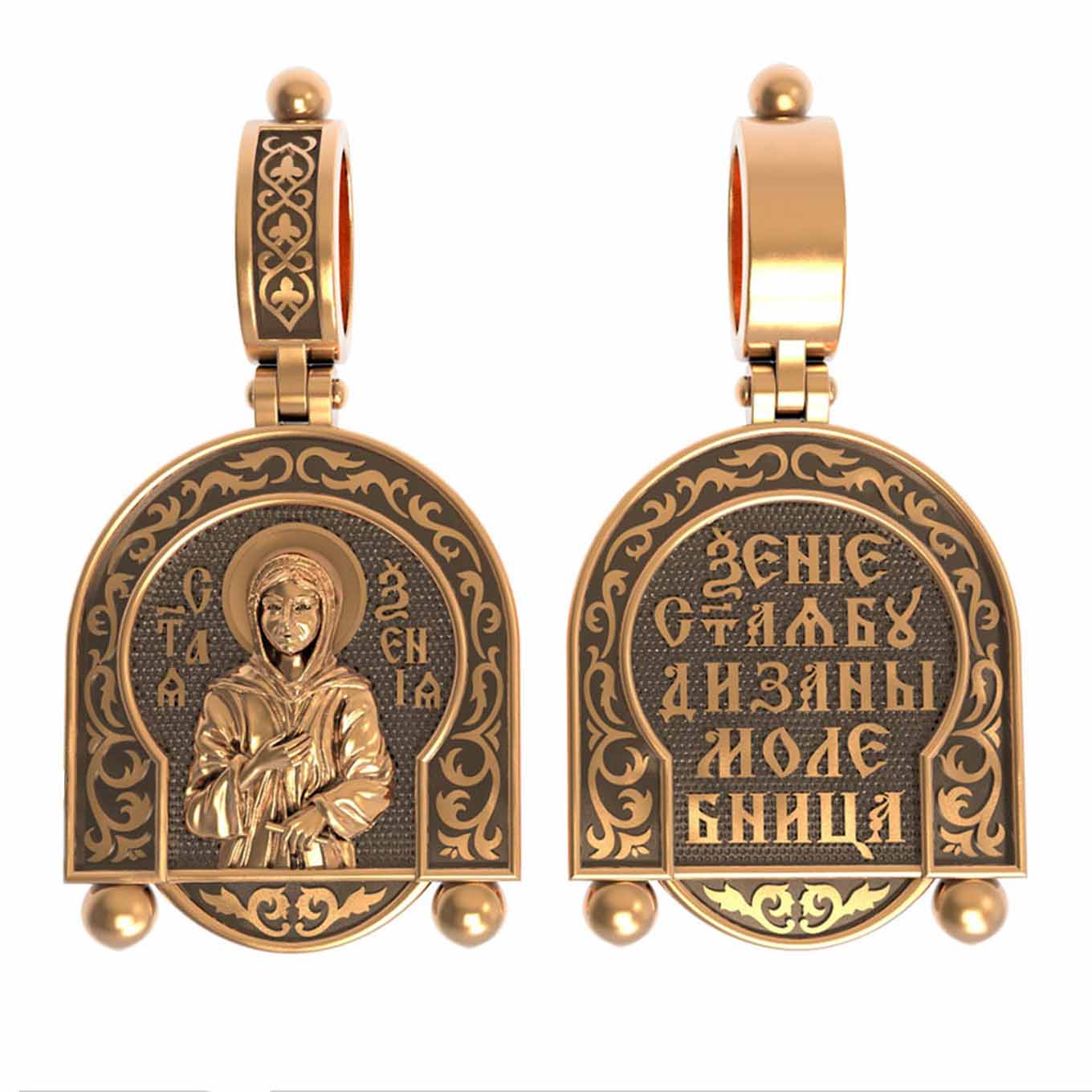 На оборотой стороне образка написана молитва: «Ксения святая, буди за нас молебница».