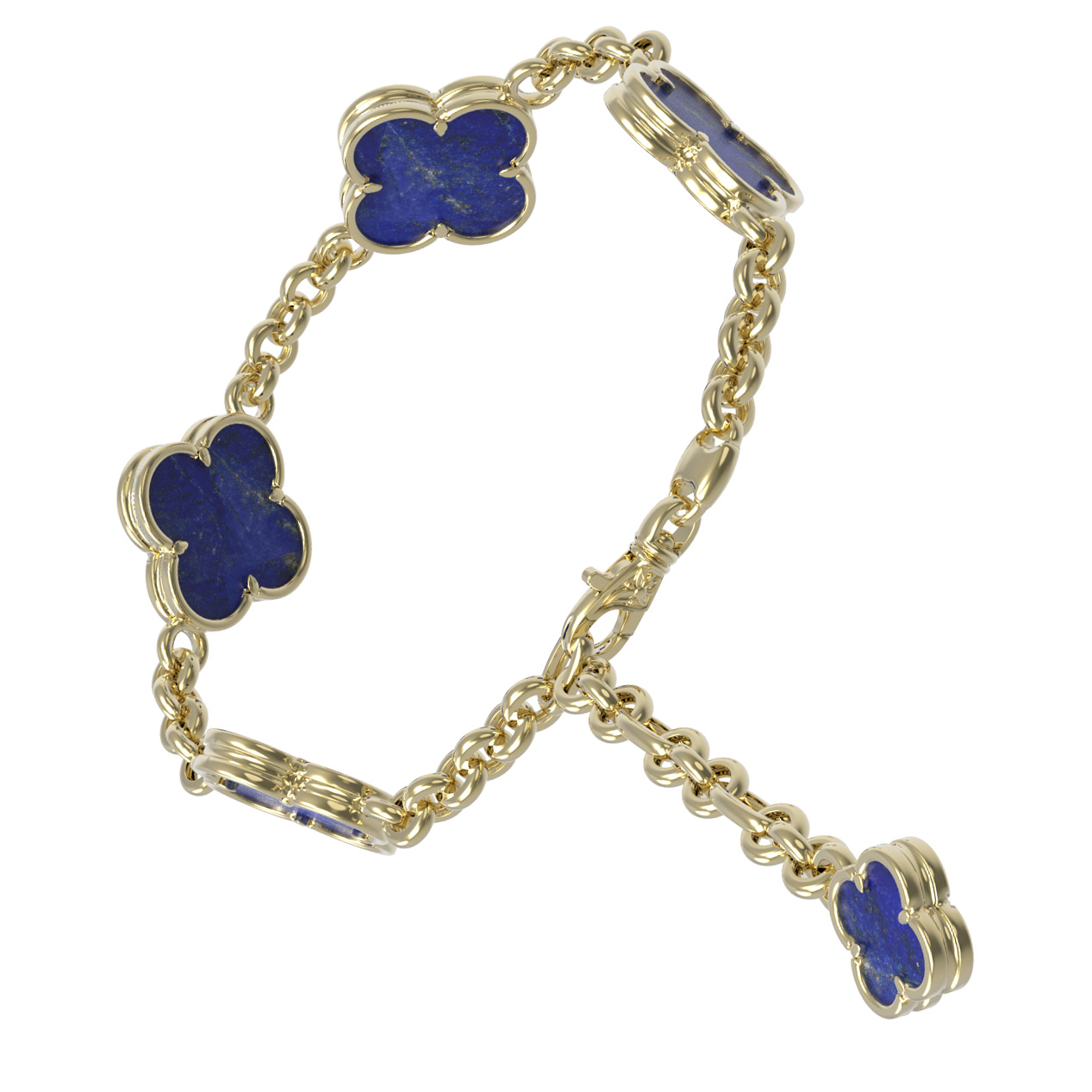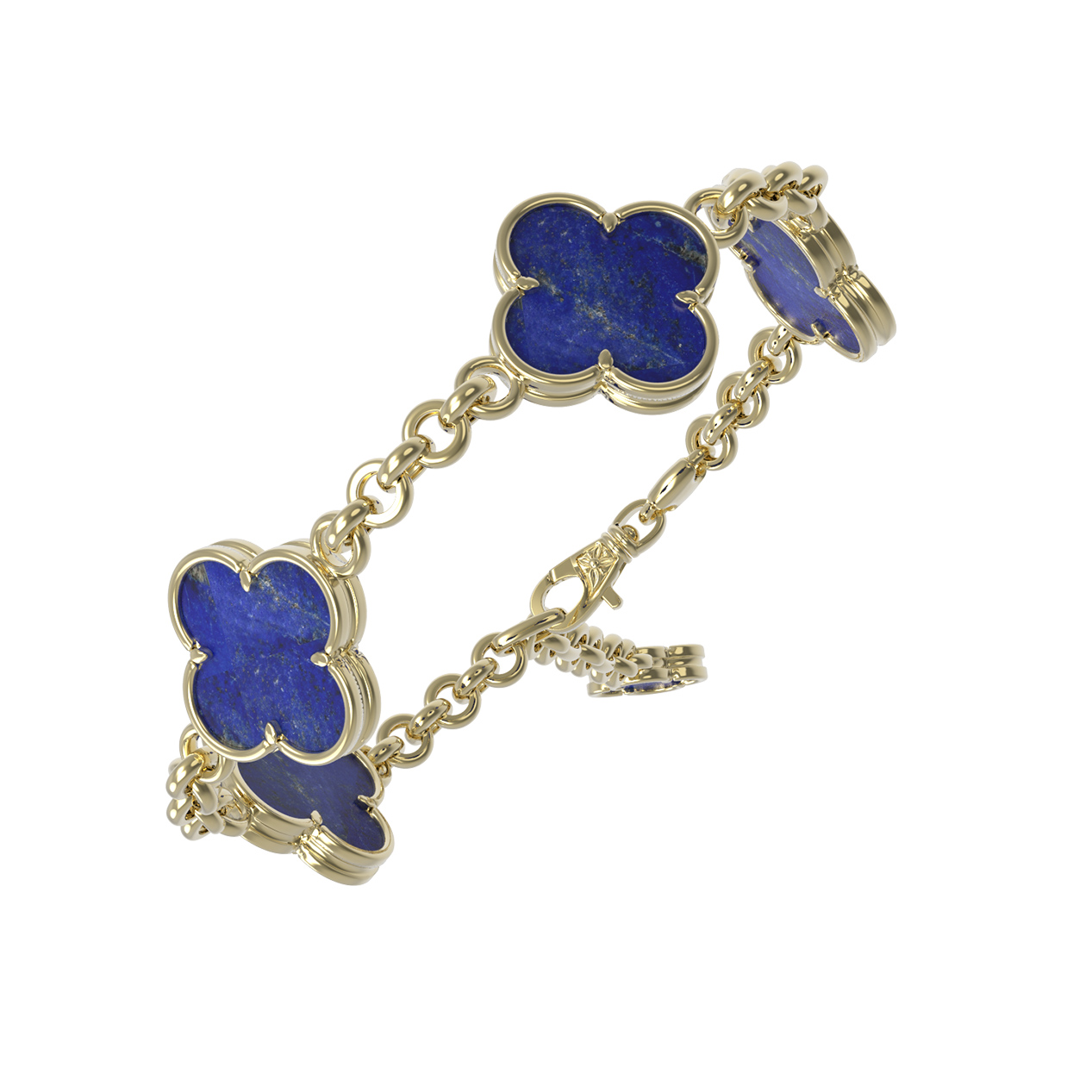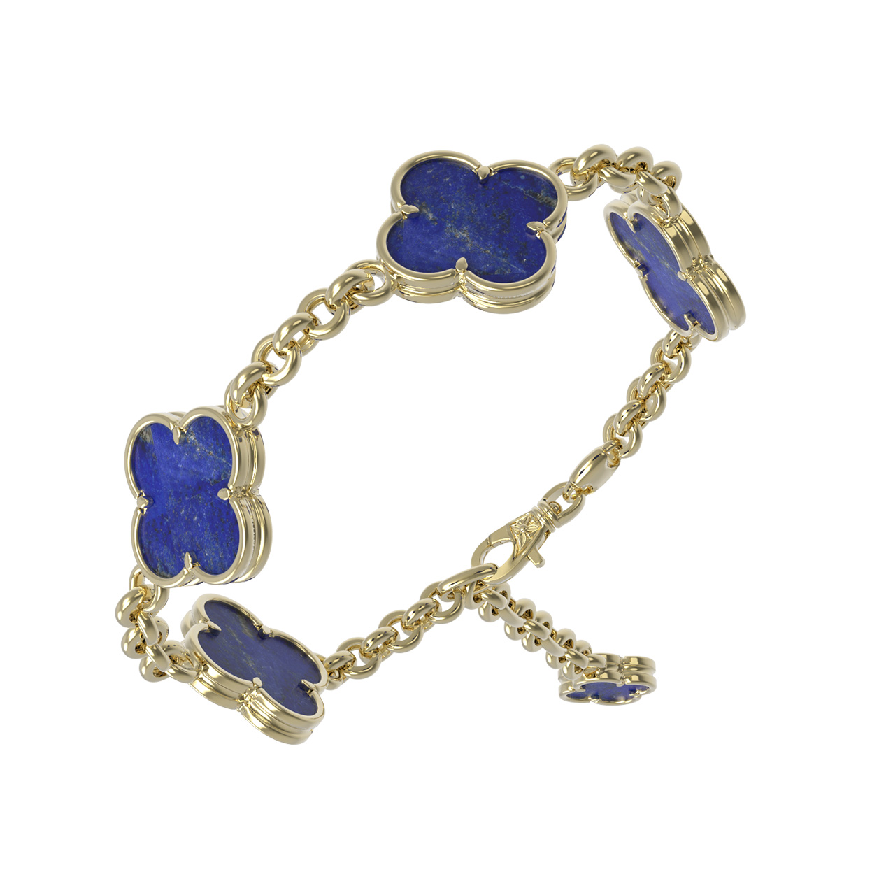 Конструкция браслета включает пять декоративных элементов-клеверов, соединенных классическим плетением, что придает изделию легкость и динамику. Надежная застежка обеспечивает комфортное ношение в течение дня. Это украшение выполнено как для женщин, так и для мужчин, предпочитающих лаконичные аксессуары с характером. Лазурит обладает уникальной текстурой, делая каждый браслет особенным. Вы можете дополнить образ другими изделиями из этой серии, создавая стильные комплекты для особых случаев или повседневных выходов. Позвольте себе роскошь, которая подчеркнет ваш безупречный вкус и чувство стиля.