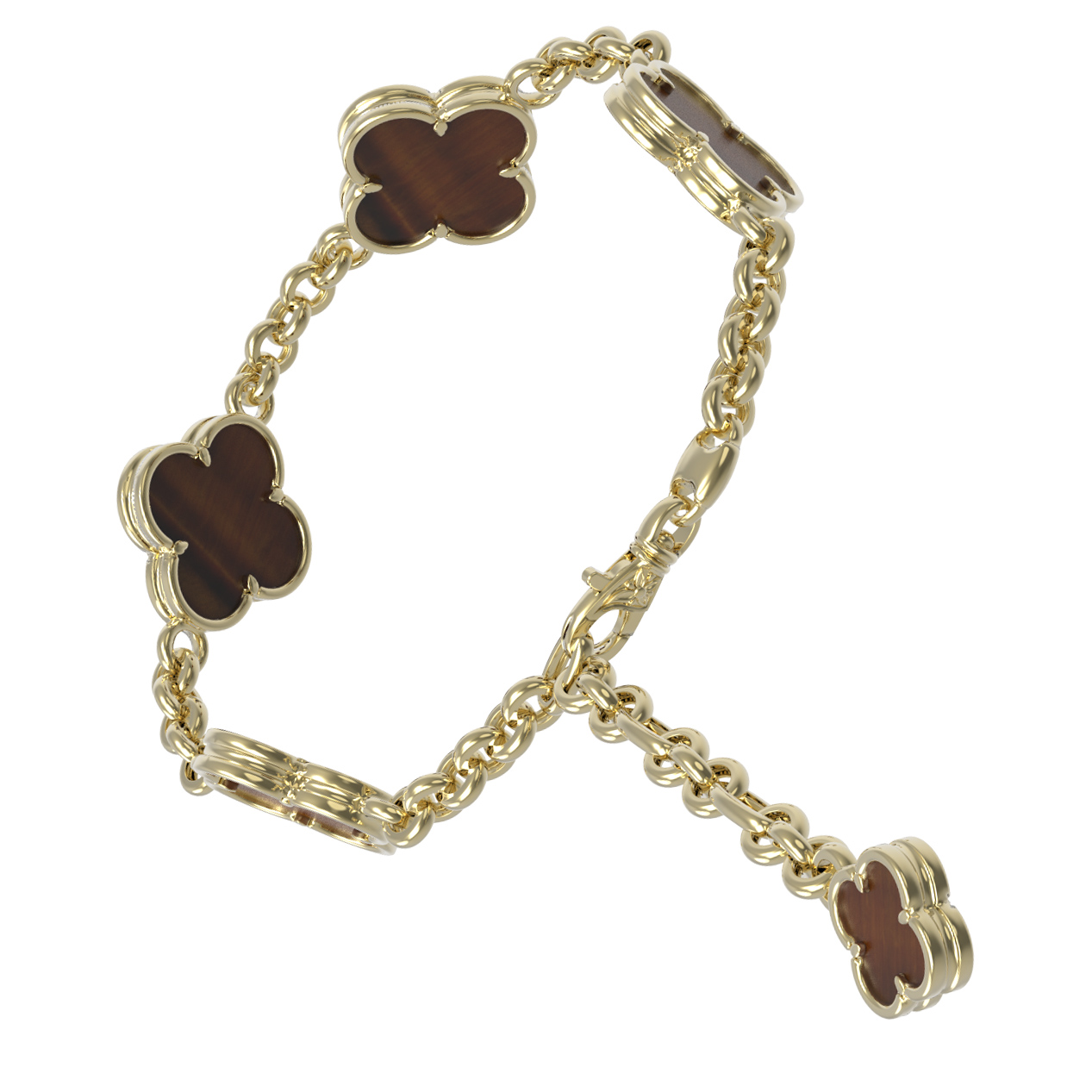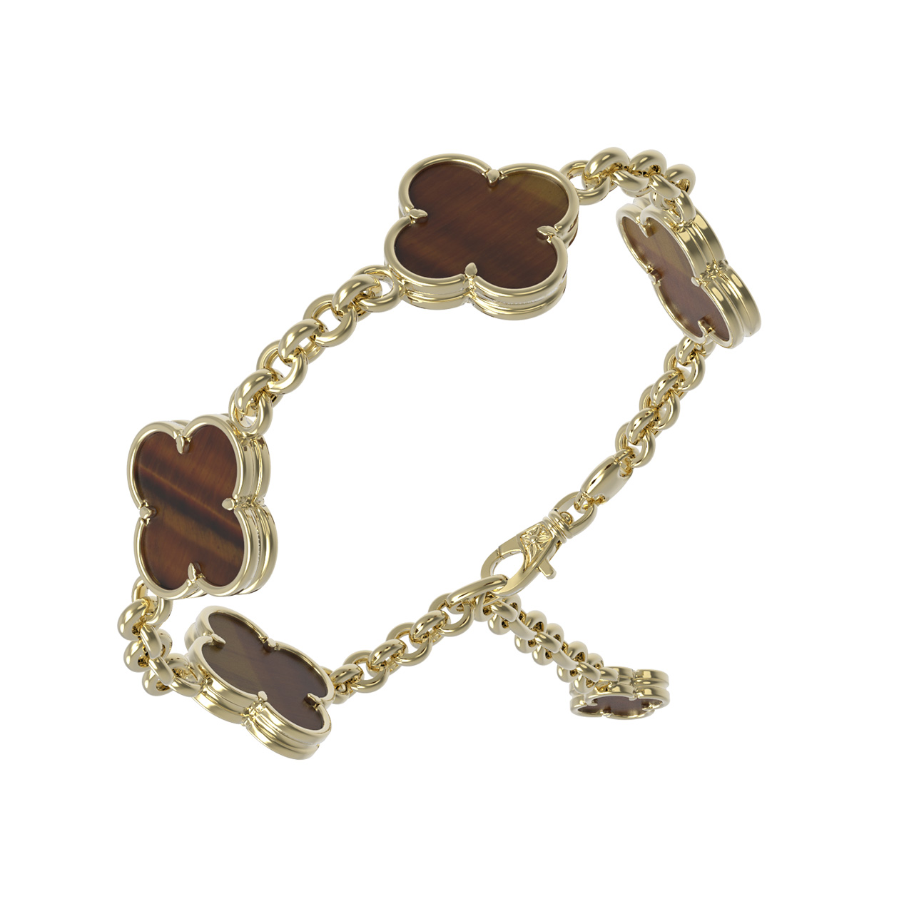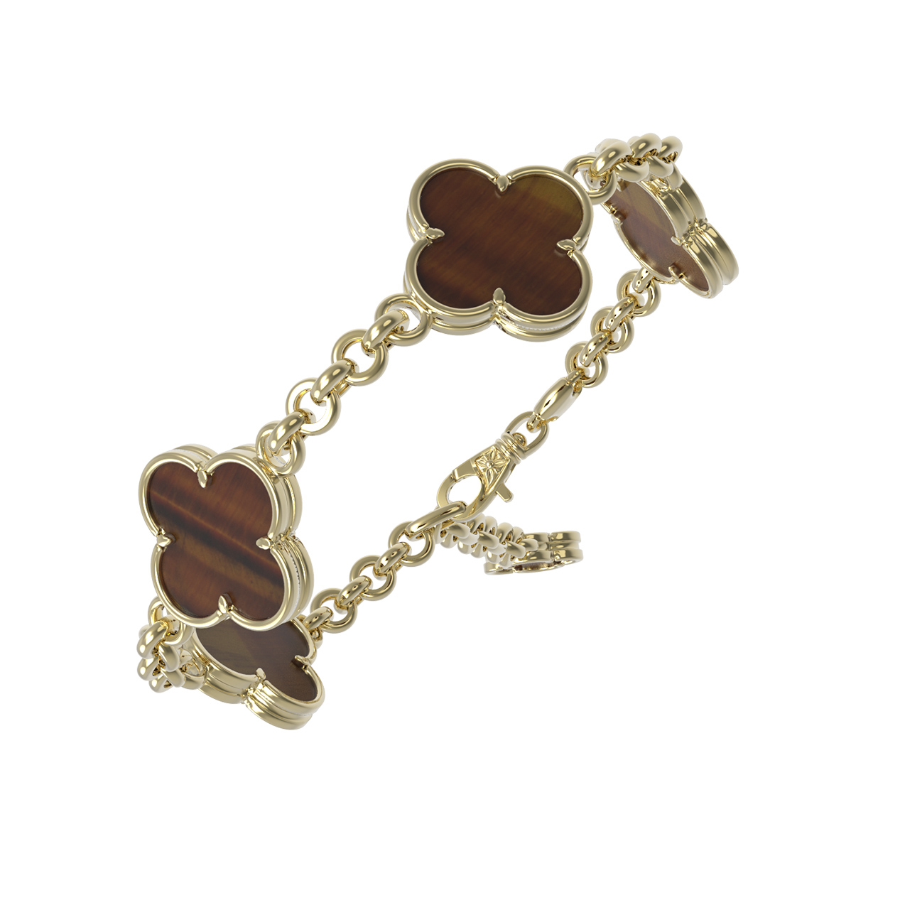 Браслет входит в коллекцию De Luxe — Клевер весна, что позволяет создавать стильные гарнитуры с другими изделиями из этой линейки. Это ювелирное украшение — прекрасный подарок для тех, кто ценит лаконичность форм и высокое качество исполнения. Закажите браслет с клеверами и тигровым глазом, чтобы добавить в свой ювелирный гардероб значимое изделие, которое никогда не выйдет из моды.