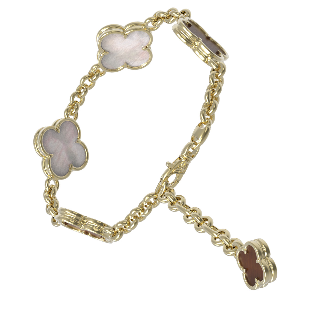 Браслет из лимонного золота c тигровым глазом и перламутром