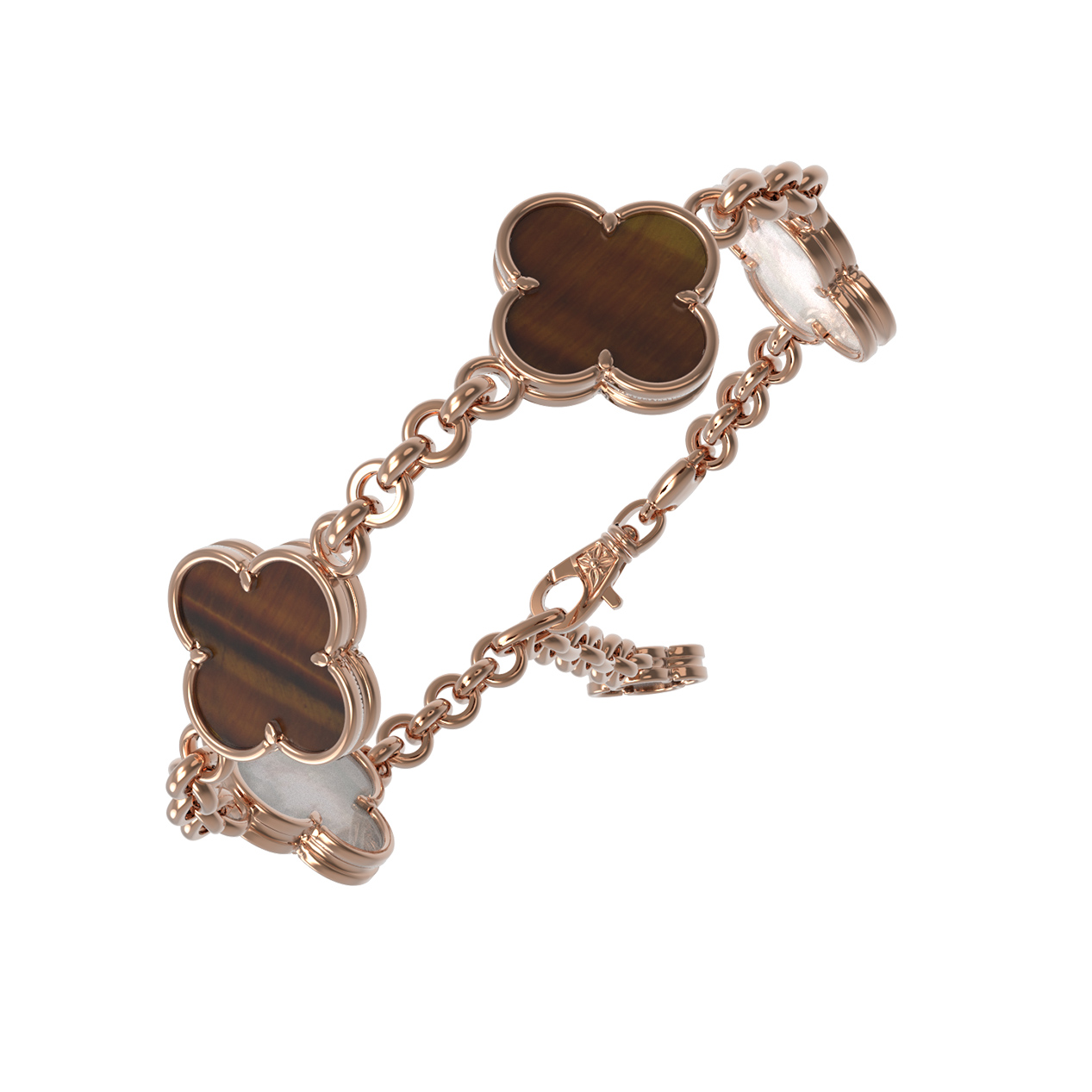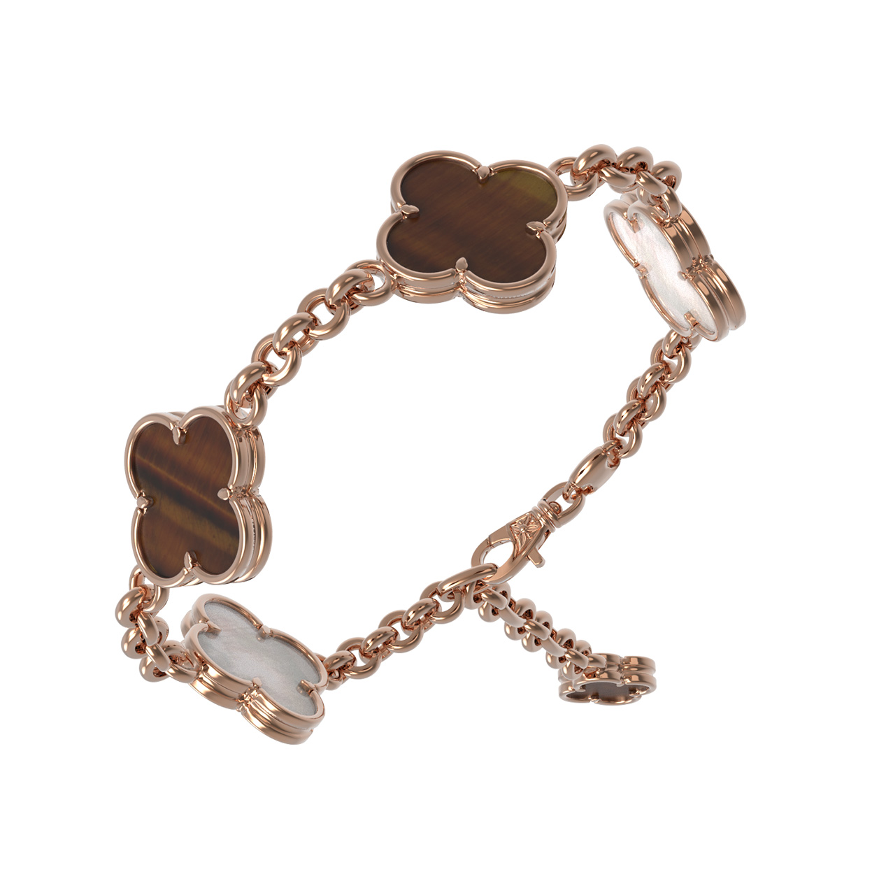 Такой браслет прекрасно смотрится как самостоятельный аксессуар, так и в сочетании с другими украшениями. Вы можете приобрести его в составе комплекта, чтобы создать завершенный и гармоничный образ. Ювелирное изделие из красного золота с тигровым глазом и перламутром — это выбор тех, кто ценит качество, благородные материалы и лаконичный дизайн в своих украшениях. Пополните свою коллекцию аксессуаров этим изысканным изделием или сделайте роскошный подарок близкому человеку.