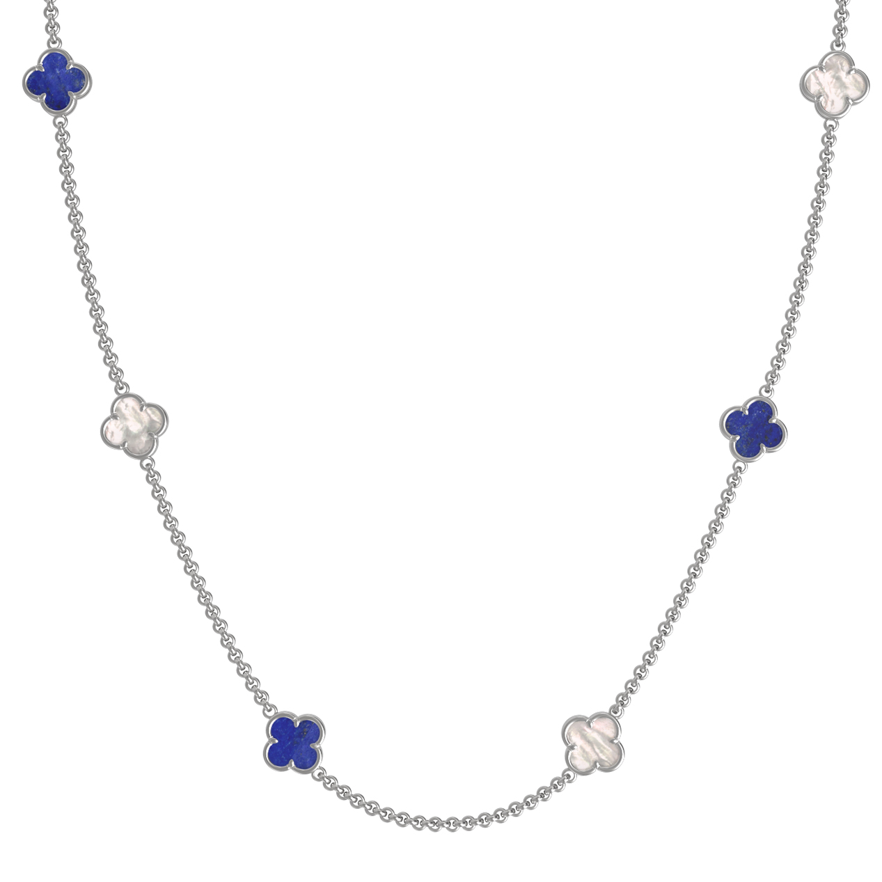 Колье из белого золота c лазуритом и перламутром