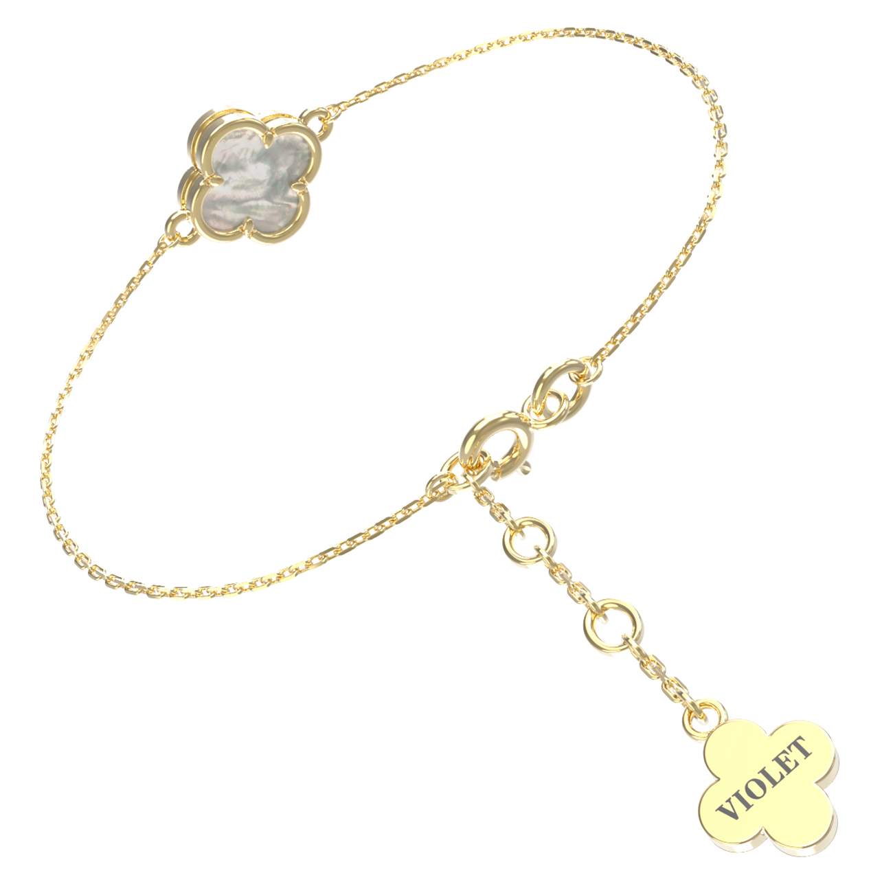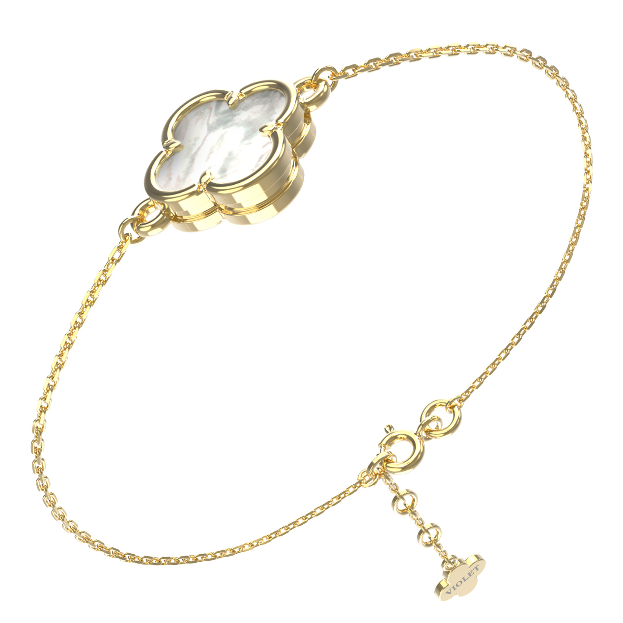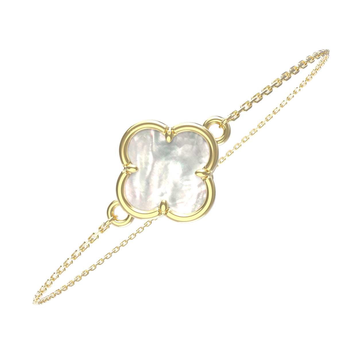 Элегантный браслет из коллекции De Luxe — Клевер весна воплощает собой гармонию стиля и лаконичности. Это изысканное украшение выполнено из лимонного золота 585 пробы, чей благородный оттенок подчеркивает природную красоту вставки из перламутра. Дизайн изделия, вдохновленный образом четырехлистного клевера, придает украшению особое очарование и символичность, делая его универсальным дополнением любого образа.