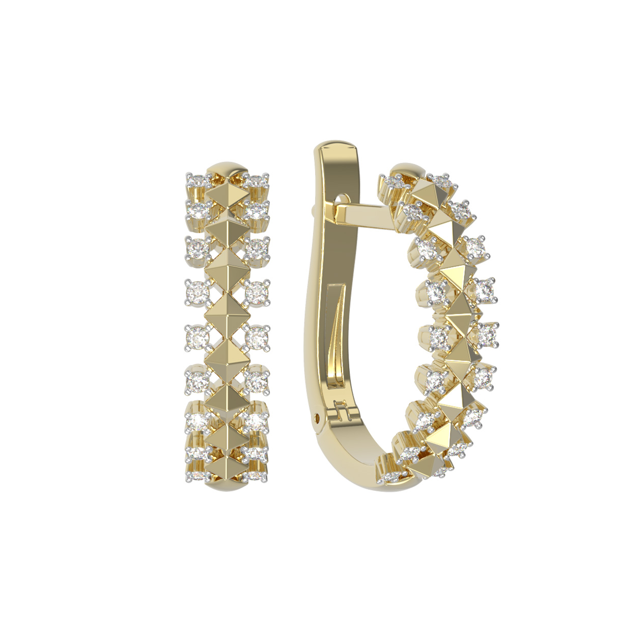 Особое внимание привлекает инкрустация: серьги украшены 36 круглыми бриллиантами с чистым белым цветом, которые создают завораживающую игру света при каждом повороте головы. Ювелирная техника сочетает в себе строгие грани и деликатное сияние драгоценных камней, что делает эти серьги универсальным дополнением к образу. Это украшение станет гармоничным выбором как для женщин, так и для мужчин, предпочитающих премиальные аксессуары с акцентными деталями.