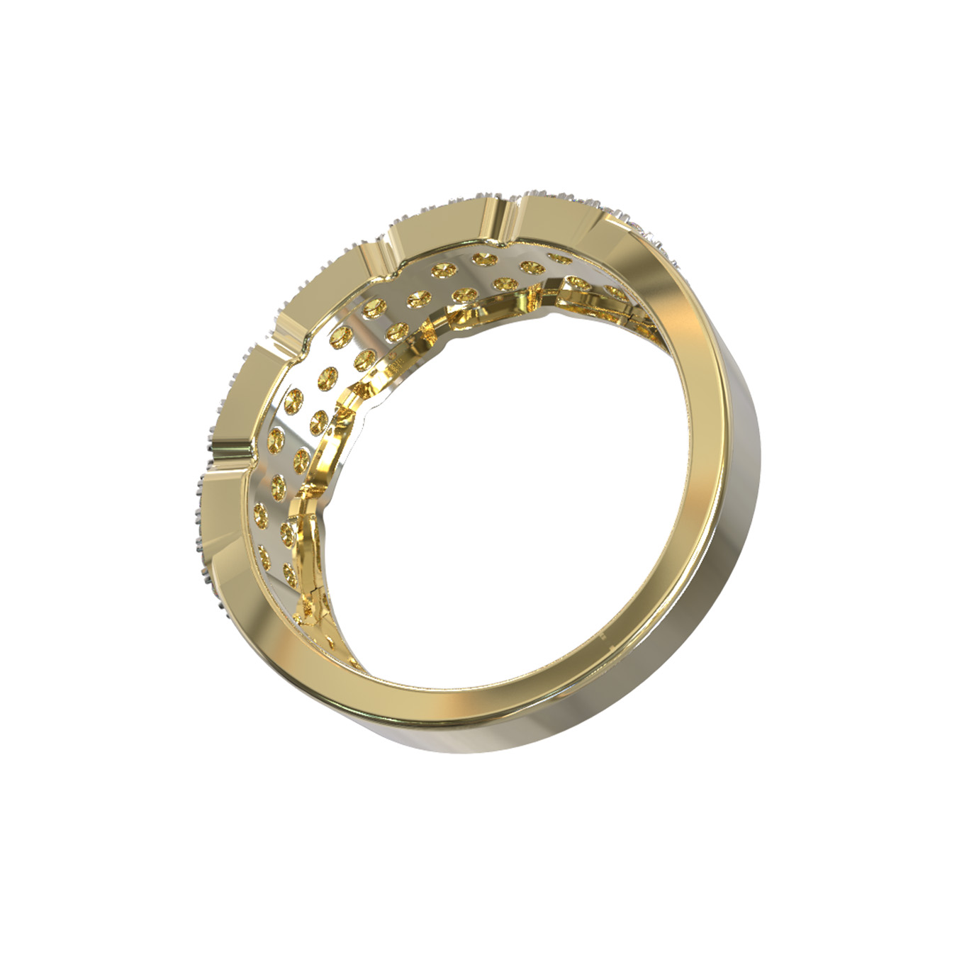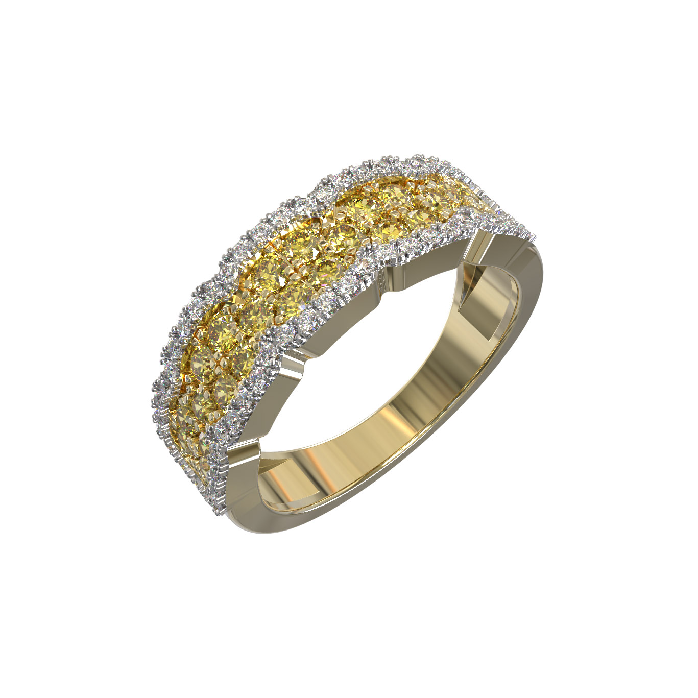 Роскошное кольцо из лимонного золота 585 пробы из коллекции De Luxe Бриллианты — Citrino станет безупречным акцентом вашего образа. Это статусное украшение привлекает внимание своим благородным сиянием, которое подчеркивает эксклюзивный дизайн и безупречное качество исполнения. Утонченная игра света достигается за счет искусной инкрустации: модель украшают 80 великолепных бриллиантов круглой огранки с изысканными желтыми вставками, создающими завораживающий контраст с теплым оттенком лимонного металла.