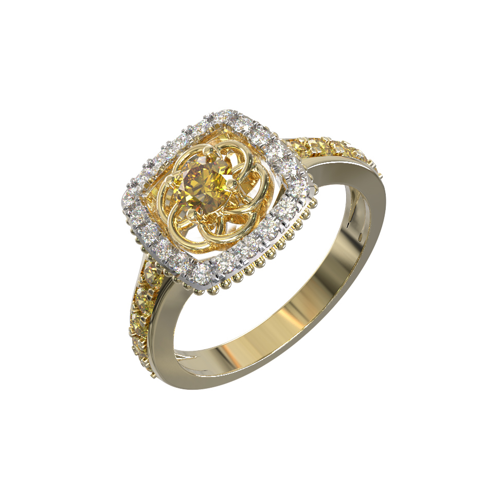 Роскошное кольцо из лимонного золота 585 пробы из коллекции De Luxe Бриллианты — Citrino станет воплощением вашего безупречного вкуса. Этот ювелирный шедевр привлекает внимание своим сложным дизайнерским исполнением, сочетающим в себе благородный металл и игру драгоценных камней. В центре композиции расположен яркий сапфир желтого цвета, окруженный изящным ажурным плетением, которое придает украшению объем и неповторимый шарм. Внешний контур украшен сверкающими бриллиантами белого цвета, создающими эффектный контраст и подчеркивающими глубину основного камня.