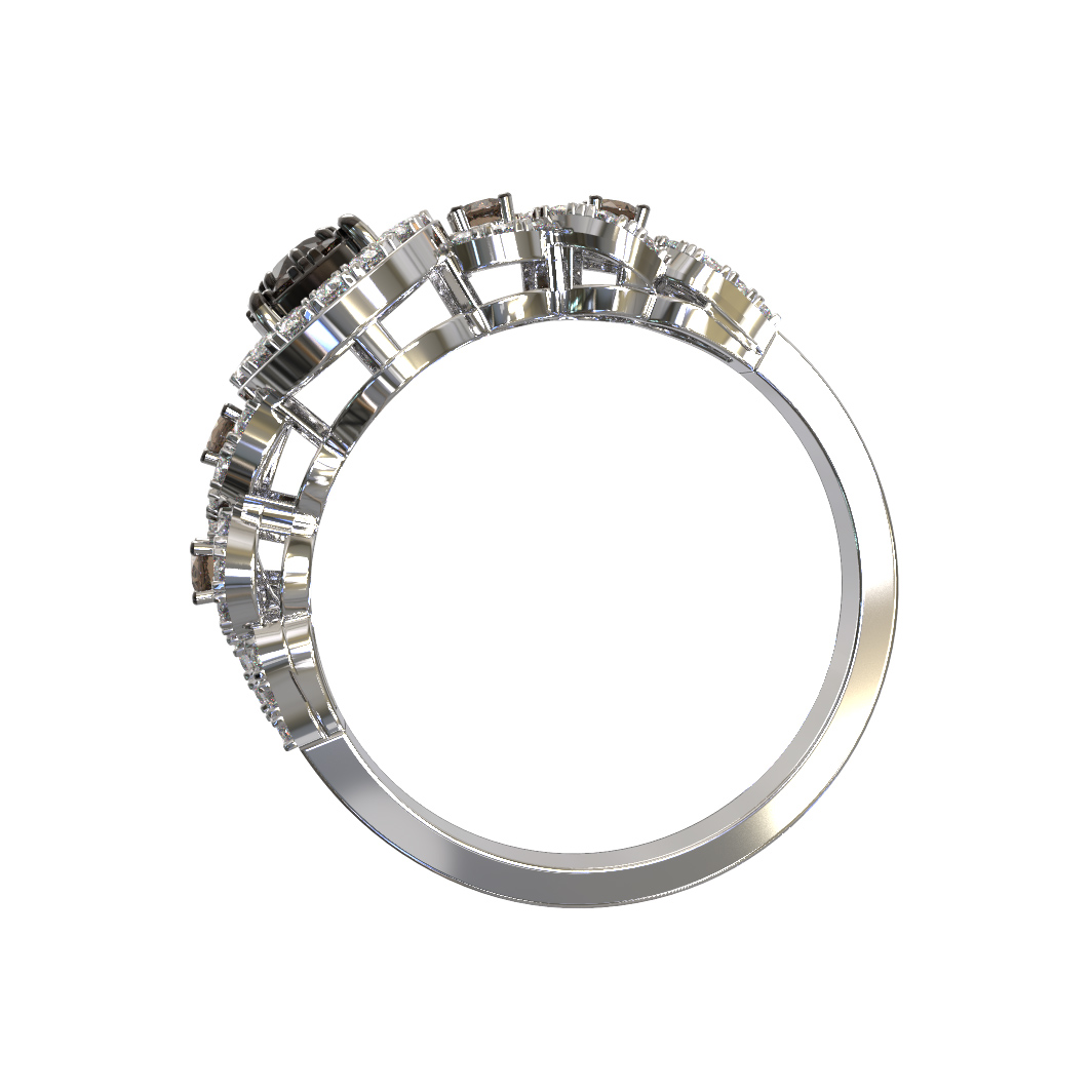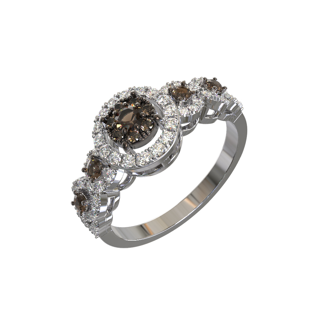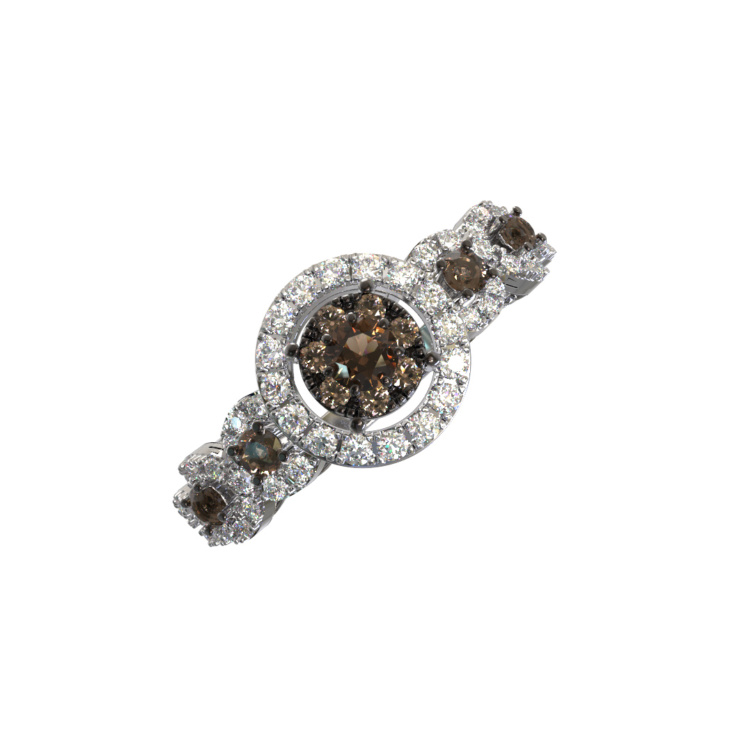 Роскошное кольцо из белого золота 585 пробы из коллекции De Luxe Бриллианты — Espresso станет идеальным акцентом вашего образа. Дизайн украшения воплощает элегантность и утонченный вкус, объединяя благородный блеск металла с глубоким, насыщенным сиянием драгоценных вставок. Центром композиции является выразительный бриллиант круглой формы, обладающий притягательным коричневым оттенком, который создает уникальный контраст с холодным сиянием оправы.