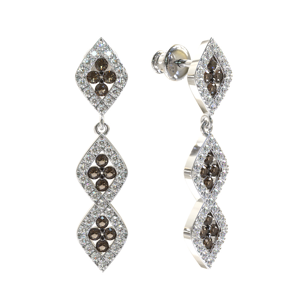 Центральным элементом дизайна стали 106 бриллиантов, создающих неповторимый сияющий ореол. Изысканная композиция включает бриллианты коричневого цвета, ограненные в классическую круглую форму, которые притягивают взгляд своим необычным и глубоким оттенком. Сложная геометрия, сочетающая множество камней, придает украшению динамику и роскошный блеск, подходящий для особенных случаев.