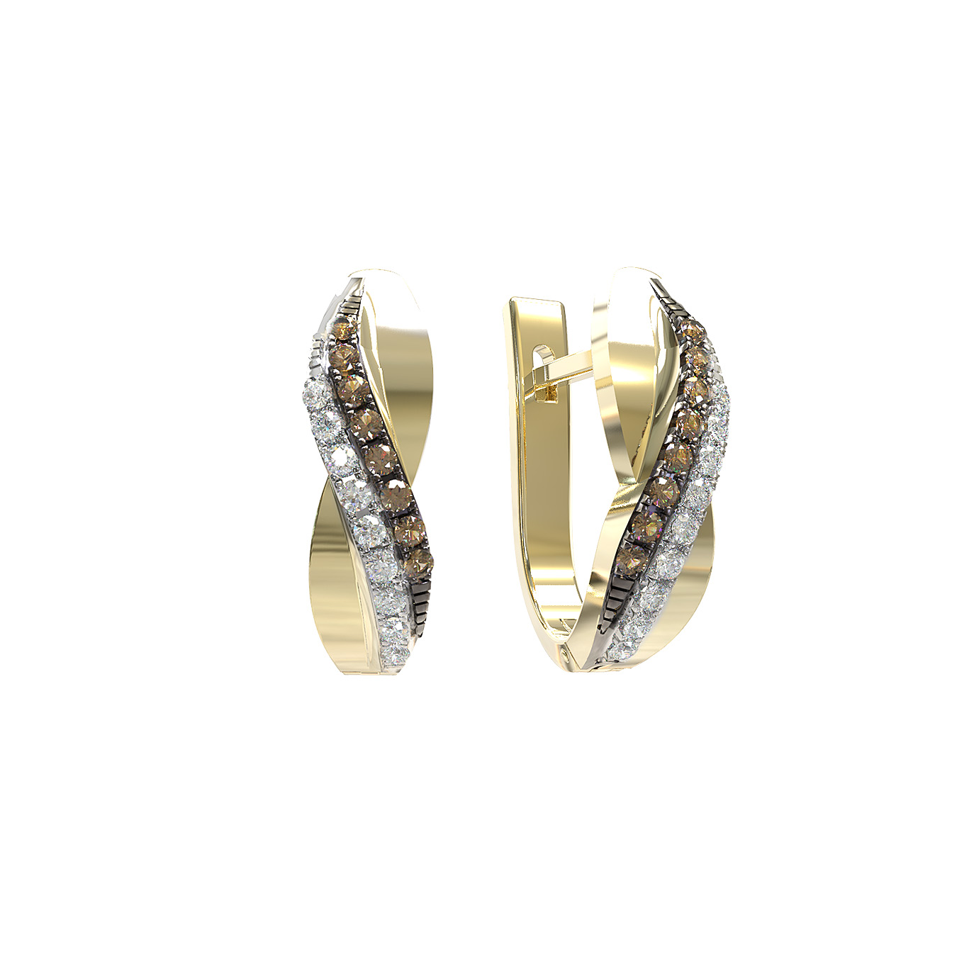 Элегантные и выразительные серьги из коллекции De Luxe Бриллианты — Espresso станут безупречным дополнением вашего образа. Это украшение выполнено из благородного лимонного золота 585 пробы, чей теплый и солнечный оттенок идеально подчеркивает роскошное сияние драгоценных камней. Особую глубину дизайну придает искусная инкрустация: в изделии использовано 34 бриллианта круглой формы, которые создают завораживающую игру света.
