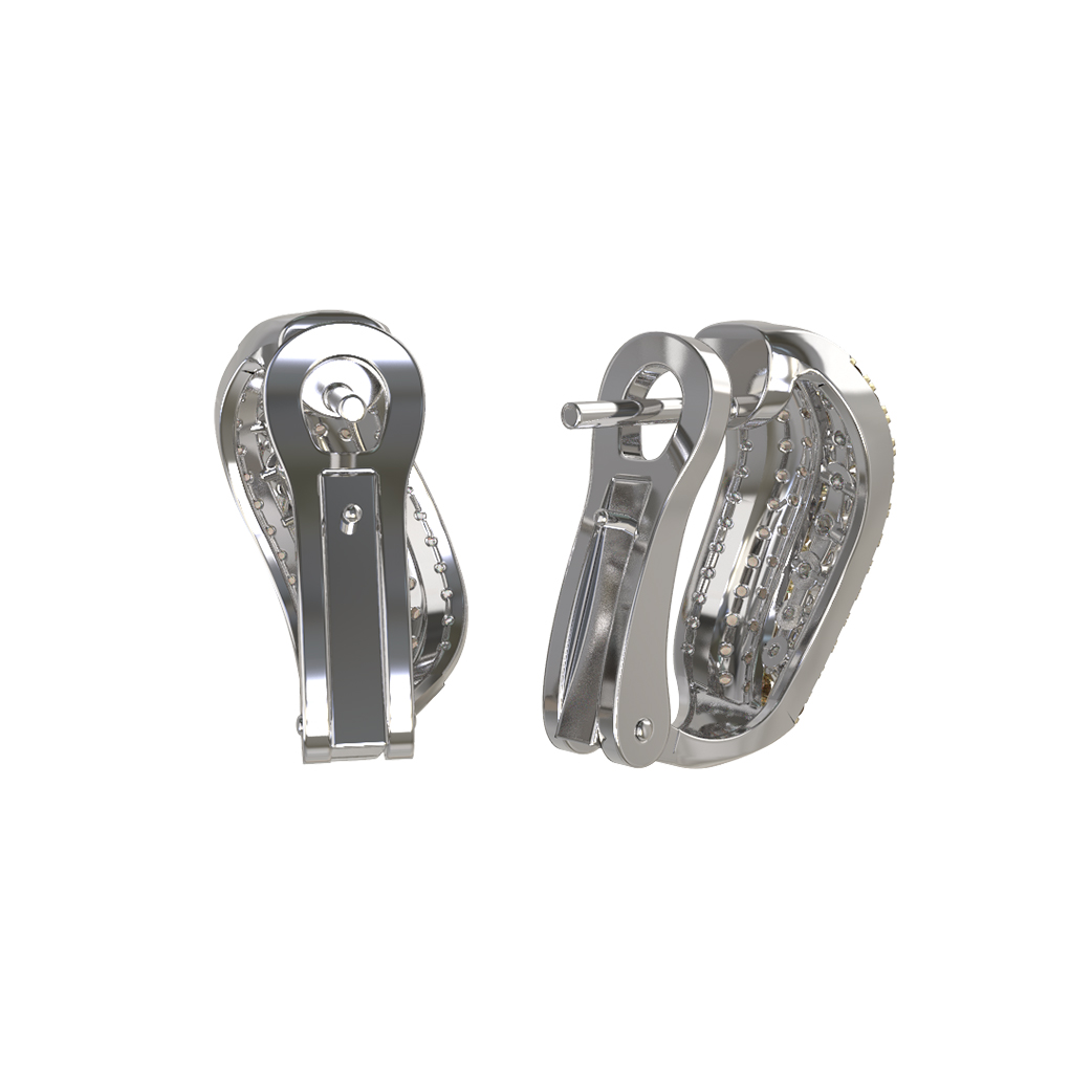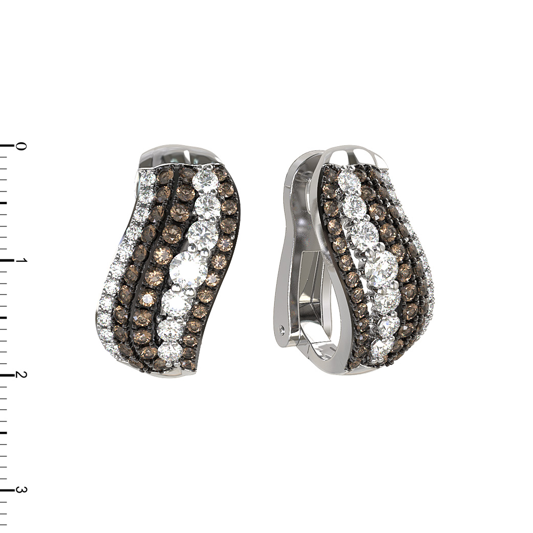 Серьги инкрустированы 106 бриллиантами круглой формы, создающими завораживающую игру света. Контрастное сочетание белого цвета вставок и темных акцентов придает украшению особую глубину и выразительность, выделяя его на фоне других аксессуаров. Качественное белое золото служит идеальной оправой, подчеркивая чистоту и блеск каждого камня.