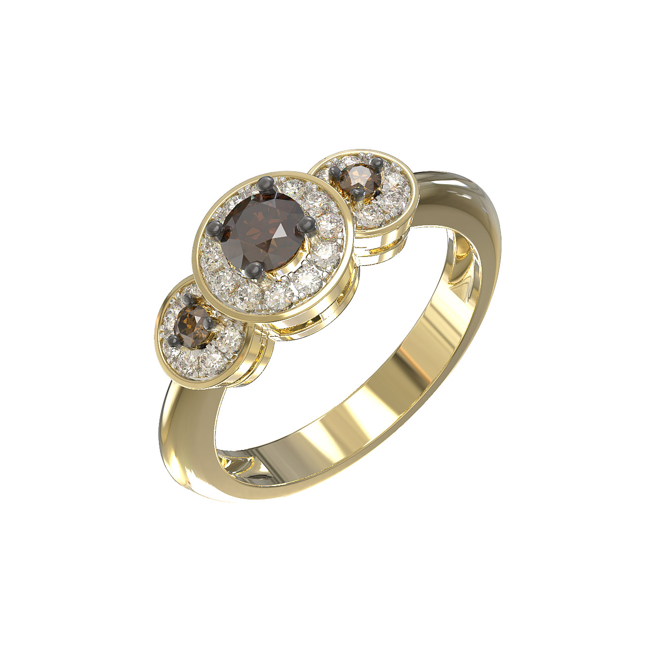 Кольцо из лимонного золота 585 пробы из коллекции De Luxe Бриллианты — Espresso воплощает в себе истинную роскошь и утонченный стиль. Это украшение станет великолепным акцентом в образе, подчеркивая статус и безупречный вкус своего владельца. Особая магия изделия заключается в сочетании благородного металла с необычными вставками: 27 бриллиантов круглой формы создают завораживающую игру света, где классическая прозрачность камней эффектно контрастирует с глубоким коричневым цветом центральных элементов.