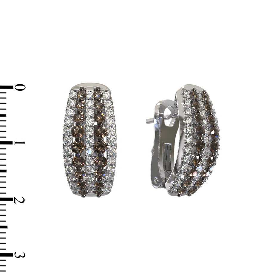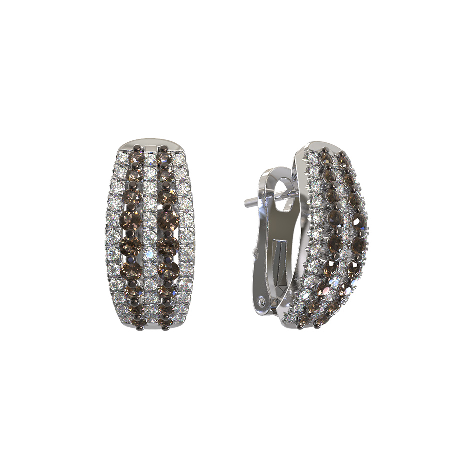 Дизайн модели впечатляет своей детализацией: в украшении использовано 108 бриллиантов круглой формы, которые создают неповторимую игру света. Особую роскошь серьгам придает сочетание прозрачных и коричневых бриллиантов, расположенных в несколько рядов. Это изысканное решение делает аксессуар по-настоящему притягательным и статусным.