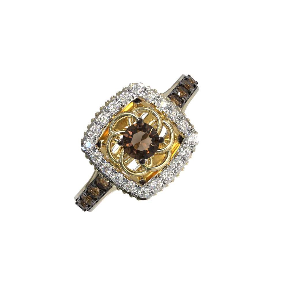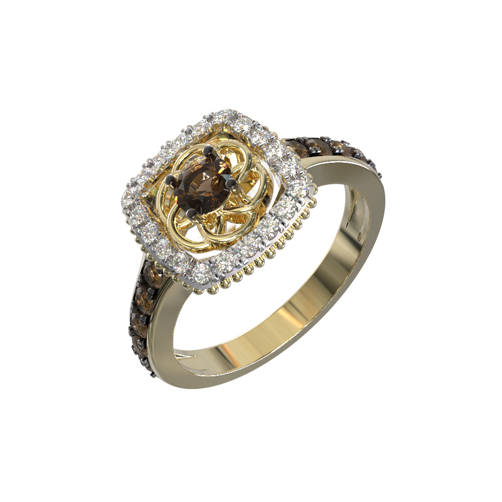 Общее количество бриллиантов в изделии составляет 31 штуку, что придает кольцу особенное сияние и визуальный объем. Сочетание лимонного оттенка золота с теплыми кофейными тонами камней делает украшение универсальным и запоминающимся. Лаконичный, но при этом сложный дизайн позволяет носить данное кольцо как мужчинам, так и женщинам — оно подчеркнет индивидуальность любого образа. Изделие прекрасно сочетается с другими украшениями бренда, позволяя создавать полноценные ювелирные комплекты.