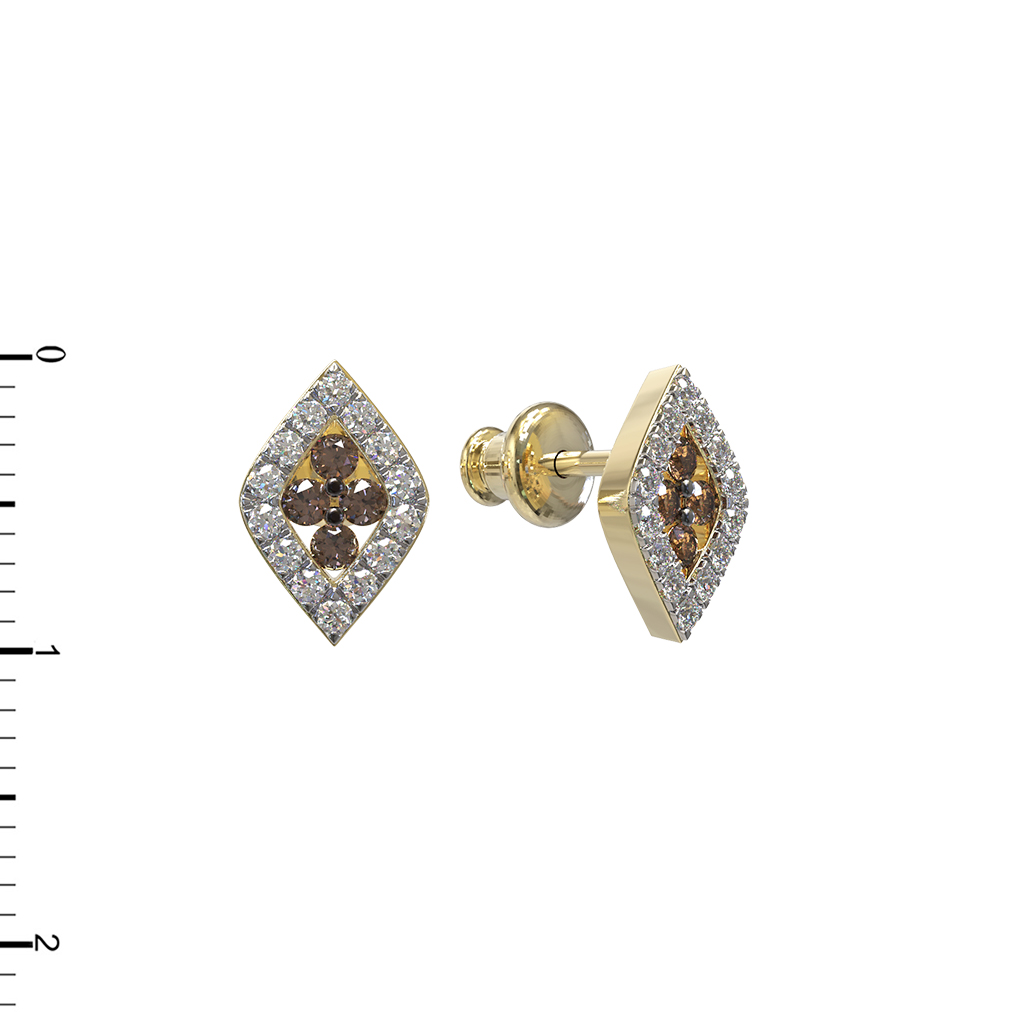 Центральным элементом композиции является изысканная россыпь вставок. Изделие инкрустировано 36 бриллиантами круглой формы, которые создают завораживающую игру света. Контрастное сочетание сияющих прозрачных бриллиантов по контуру и глубоких коричневых вставок в центре создает неповторимый визуальный эффект. Лимонный оттенок золота гармонично дополняет насыщенный цвет вставок, придавая украшению благородное звучание.