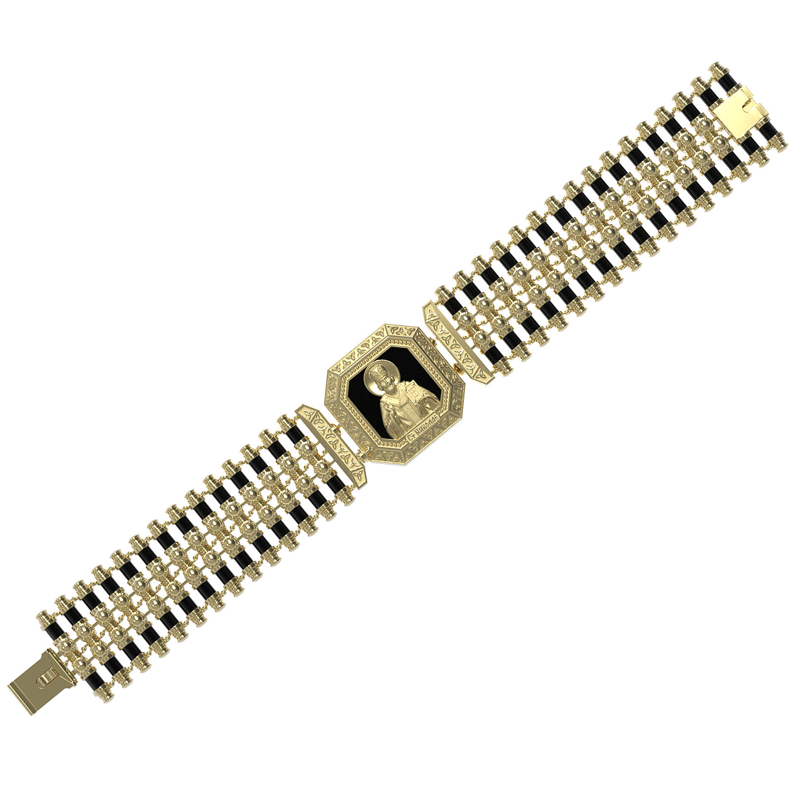 Лицевую сторону основного звена возглавляет икона Святителя Николая Чудотворца. Живший в III веке епископ Ликийского города Миры — самый почитаемый святой не только в России, но и во всем мире. Николай Чудотворец, помощник в делах, покровитель учащихся, утешитель обиженных и нуждающихся, целитель самых страшных и тяжелых недугов, предстатель и молитвенник за людей перед Богом. Также Святитель Николай Чудотворец известен своими молитвами за путешественников, когда непрестанный ветер и бушующие волны утихают и корабль заходит в спокойную гавань.