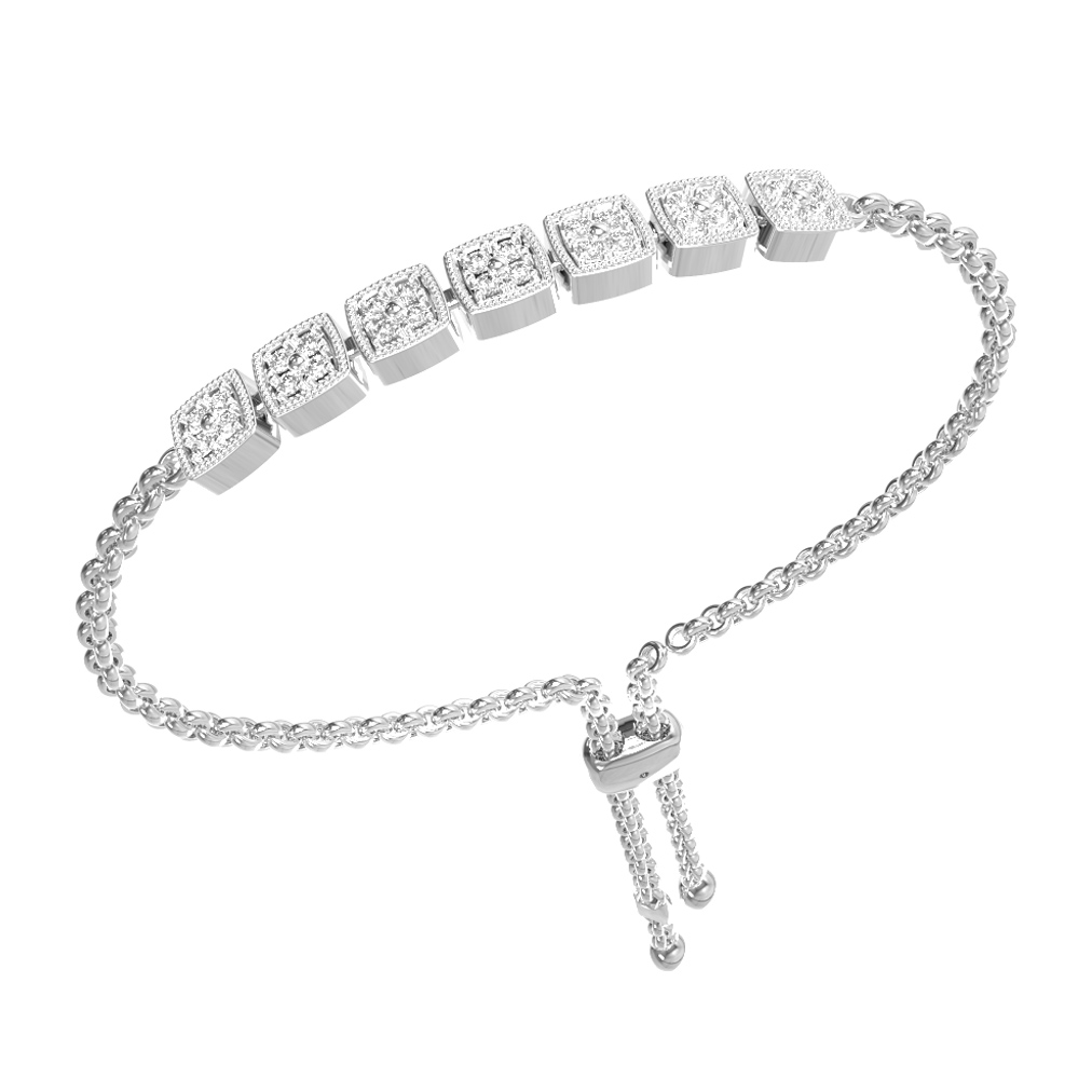 Откройте для себя воплощение современной элегантности с браслетом из белого золота 585 пробы из коллекции De Luxe Бриллианты — Quattro. Это изысканное ювелирное украшение объединяет в себе безупречный стиль и премиальное качество исполнения. Дизайн модели строится на контрасте нежного, гибкого плетения цепи и выразительных декоративных элементов квадратной формы, которые притягивают взгляд своим блеском.