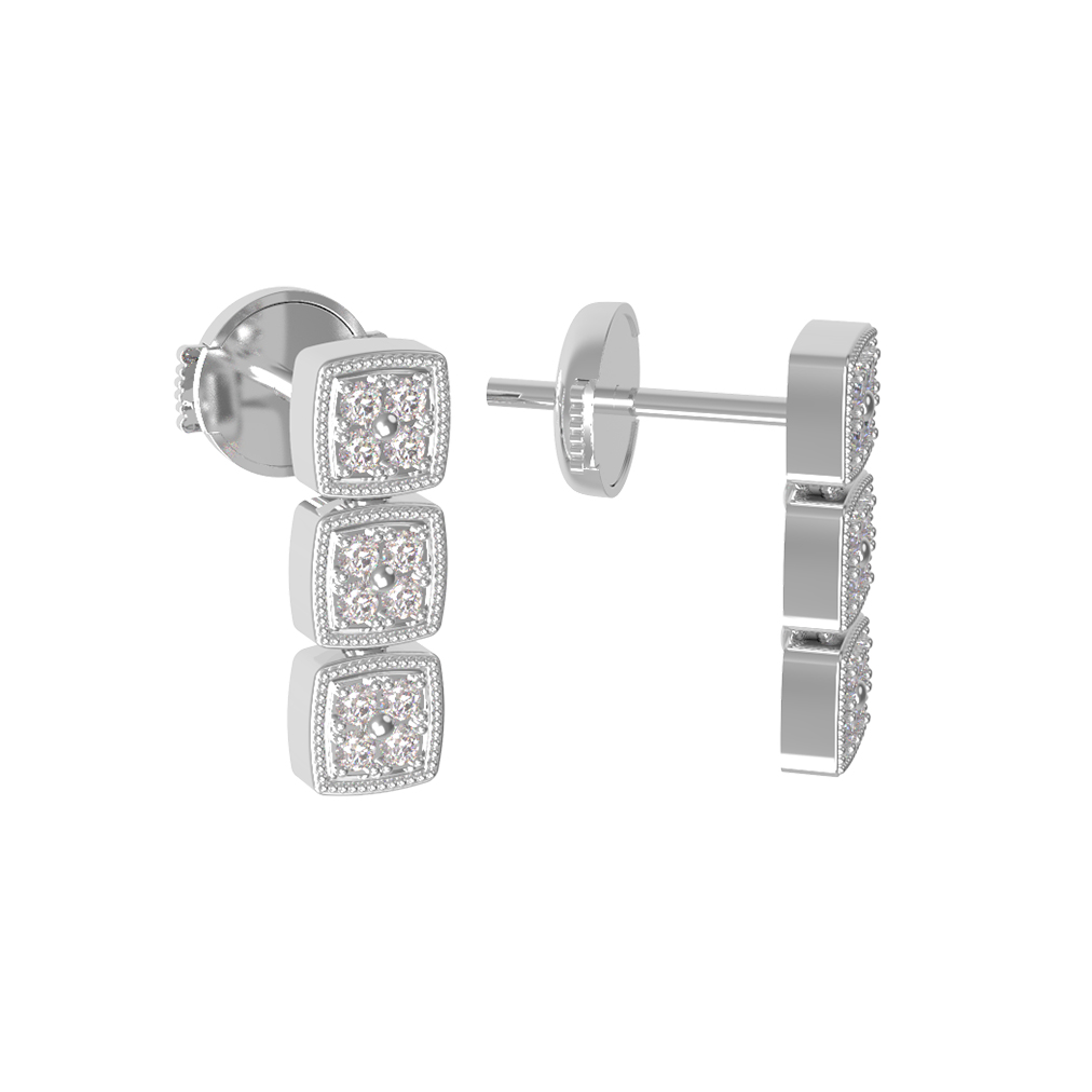 Элегантные серьги из белого золота 585 пробы из коллекции De Luxe Бриллианты — Quattro станут безупречным дополнением вашего образа. Это утонченное ювелирное изделие воплощает в себе сдержанную роскошь и классическую эстетику, позволяя подчеркнуть безупречный вкус владельца. Дизайн украшения продуман до мелочей: три квадратных декоративных элемента, расположенных вертикально, создают гармоничную и завершенную композицию, которая одинаково органично смотрится как в повседневных, так и в вечерних сетах.