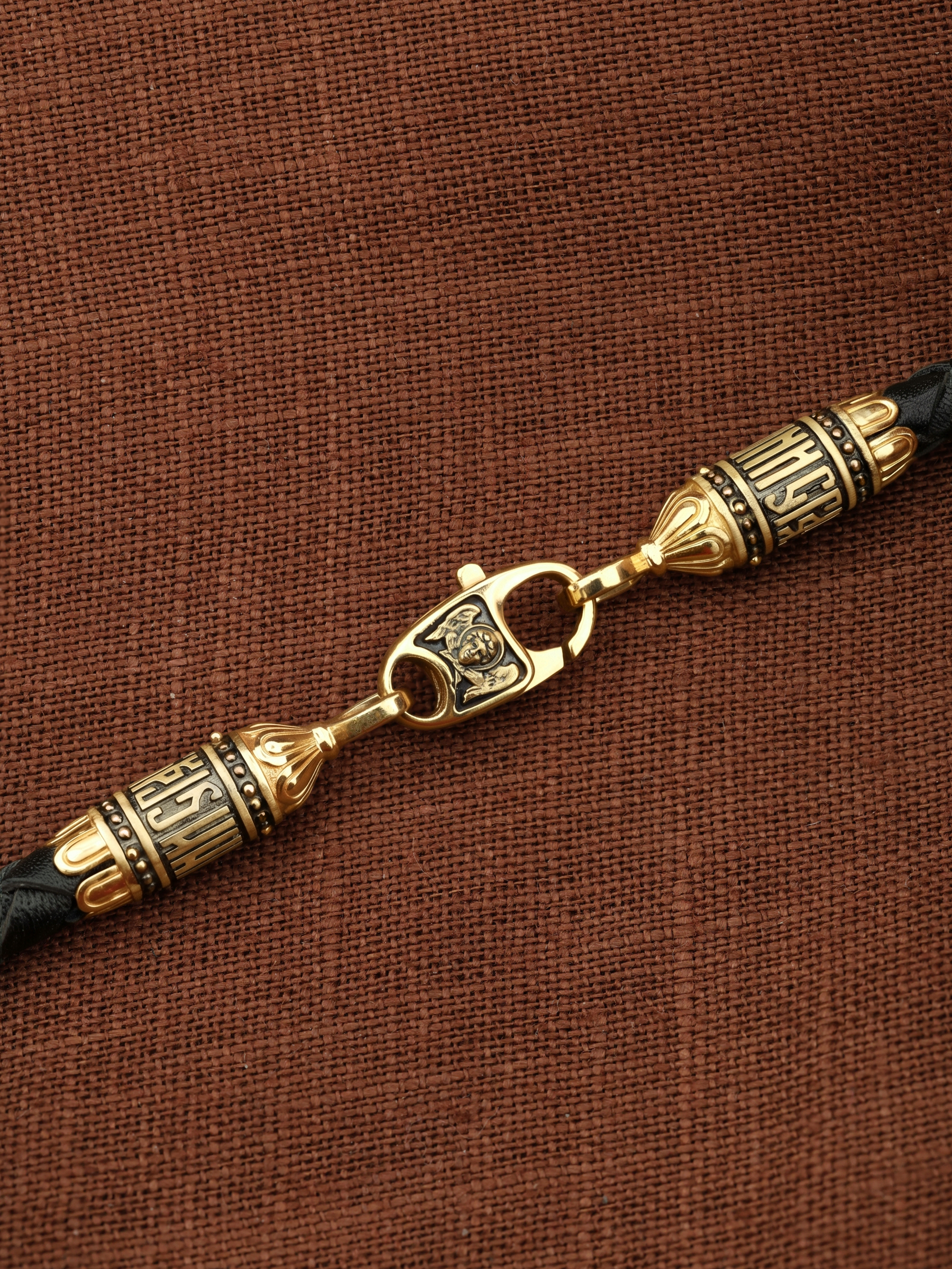 Гайтан из лимонного золота c кожаным шнурком