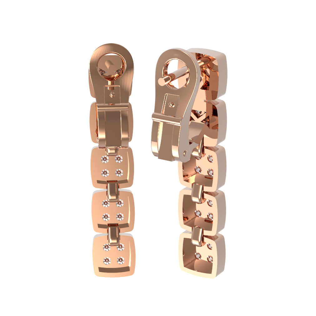 Особую ценность изделию придает богатая инкрустация — серьги украшены 40 бриллиантами круглой формы с белым цветом вставок. Сияние драгоценных камней эффектно контрастирует с теплым оттенком красного золота, создавая гармоничную игру света при каждом движении. Благодаря продуманной конструкции, данные серьги отлично подойдут как для женщин, желающих подчеркнуть свою элегантность, так и для мужчин, предпочитающих статусные и сдержанные аксессуары.