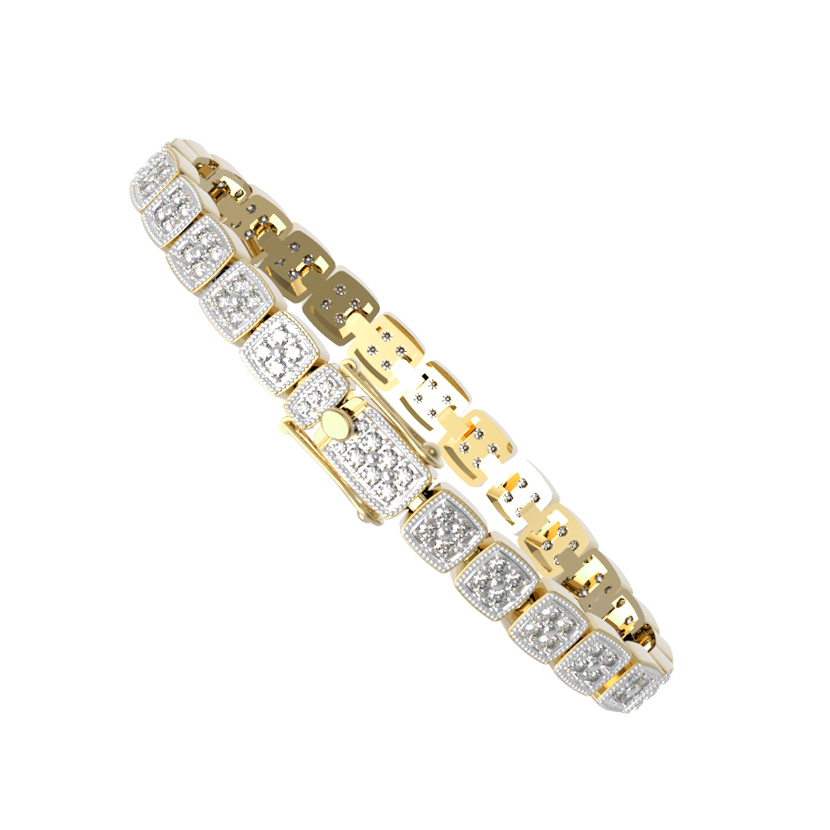 Роскошный браслет из коллекции De Luxe Бриллианты — Quattro станет достойным дополнением вашего ювелирного гардероба. Это украшение выполнено из лимонного золота 585 пробы, чей благородный солнечный оттенок идеально подчеркивает сияние драгоценных камней. Особая эстетика изделия заключается в чередовании квадратных звеньев, создающих динамичный и современный облик.