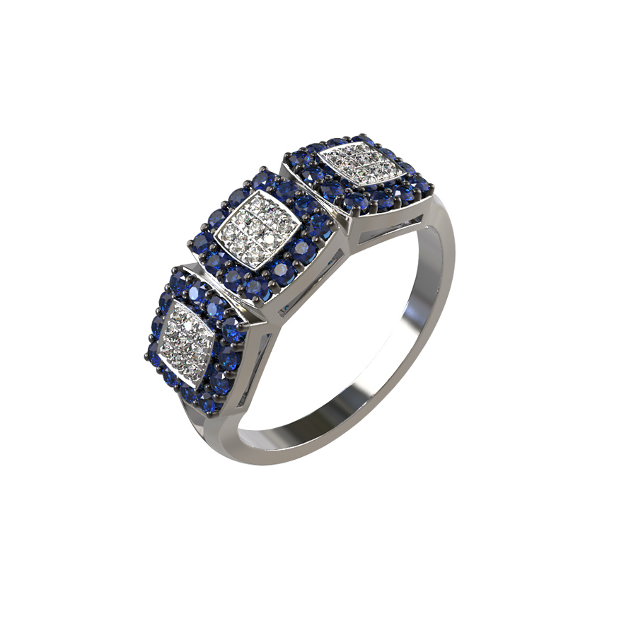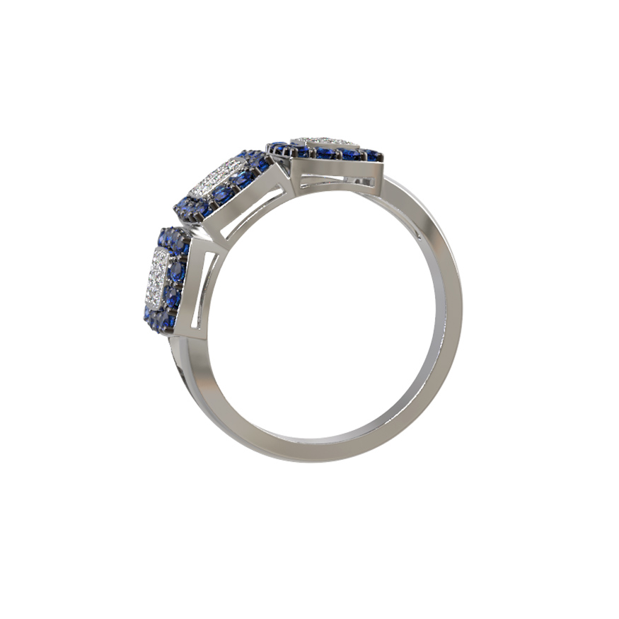 Роскошное кольцо из белого золота 585 пробы из коллекции De Luxe Бриллианты — Quattro станет воплощением вашего изысканного вкуса и утонченного стиля. Дизайн изделия объединяет в себе благородство металла и сияние драгоценных камней, создавая гармоничное сочетание для самых торжественных случаев. Внешний вид кольца притягивает взгляд оригинальным композиционным решением: три квадратных сегмента, украшенных бриллиантами, окружены выразительной россыпью сапфиров.
