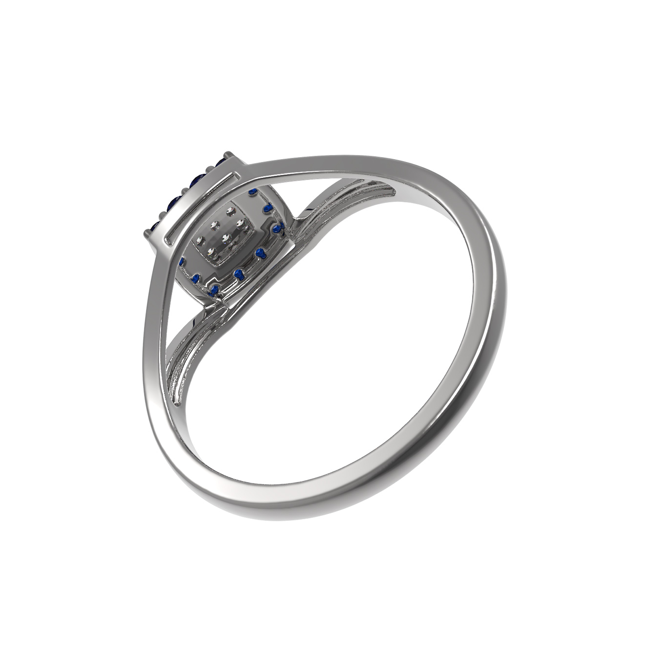 Кольцо из белого золота c бриллиантами и сапфиром