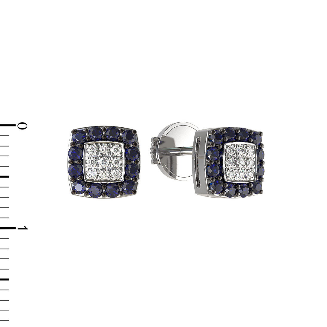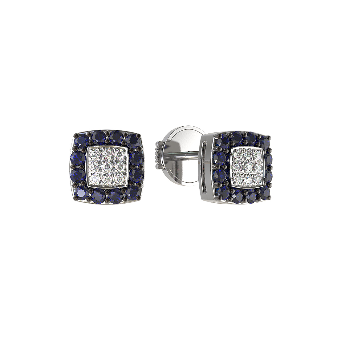 Центральную часть изделия украшают ослепительные вставки в форме круга, которые инкрустированы по особой технологии. Всего в серьгах использовано 42 вставки: сочетание прозрачных бриллиантов и насыщенных синих сапфиров приковывает взгляд своей игрой света. Белый цвет бриллиантов и глубокий синий оттенок сапфиров создают утонченную композицию, которая подчеркнет статус и хороший вкус владельца.