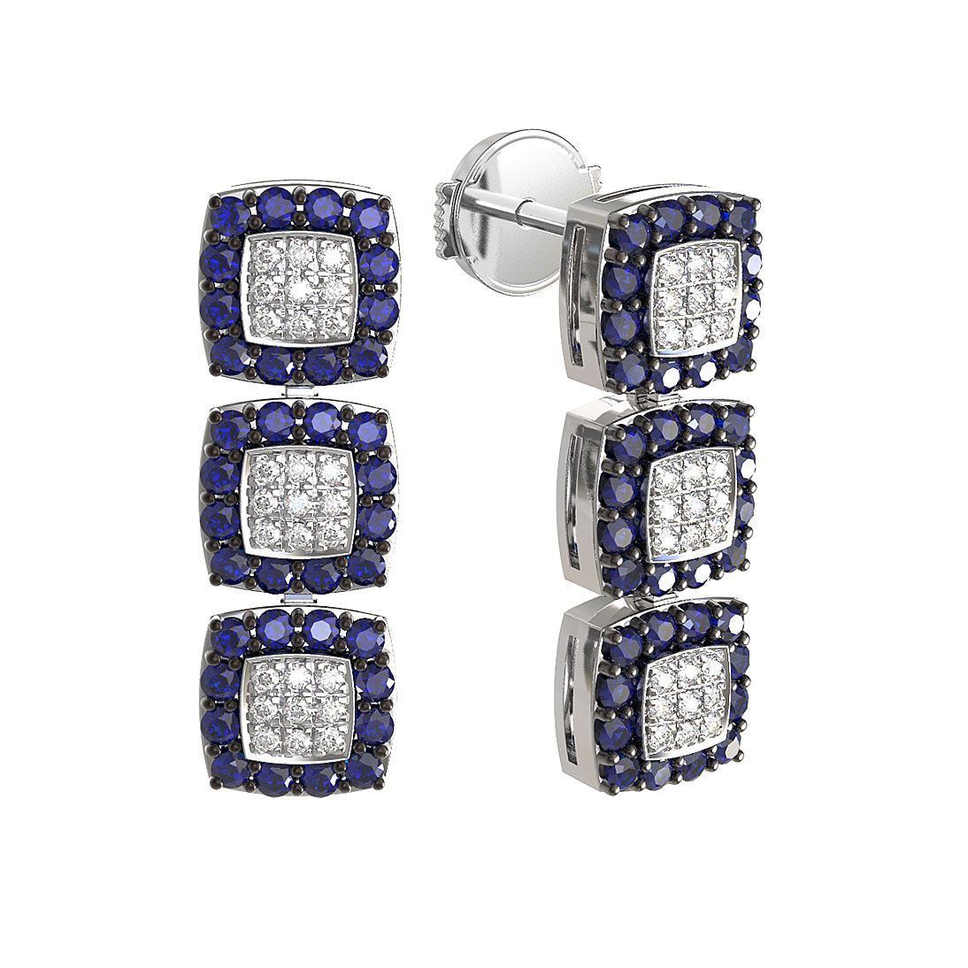 Серьги из коллекции De Luxe Бриллианты — Quattro гармонично дополнят любые другие украшения, позволяя создавать полноценные комплекты. Приобретая данное изделие, вы делаете выбор в пользу изысканного стиля, безупречного исполнения и долговечности материалов. Эти серьги с бриллиантами и сапфирами станут значимым вложением в ювелирный гардероб или роскошным подарком для особенного человека.