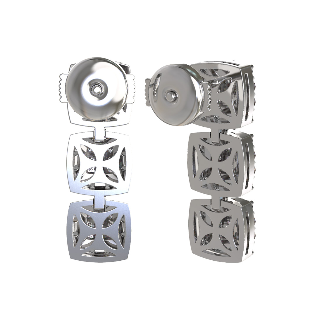 Эти серьги — идеальный выбор для ценителей статусного минимализма. Лаконичная, но выразительная композиция позволяет носить украшение как с вечерними нарядами, так и с элегантными повседневными комплектами. Благодаря своей универсальности, модель подходит как для женщин, так и для мужчин, предпочитающих качественные ювелирные изделия с акцентным дизайном. Качественное белое золото служит надежной оправой, подчеркивая чистоту и холодный блеск каждой вставки.