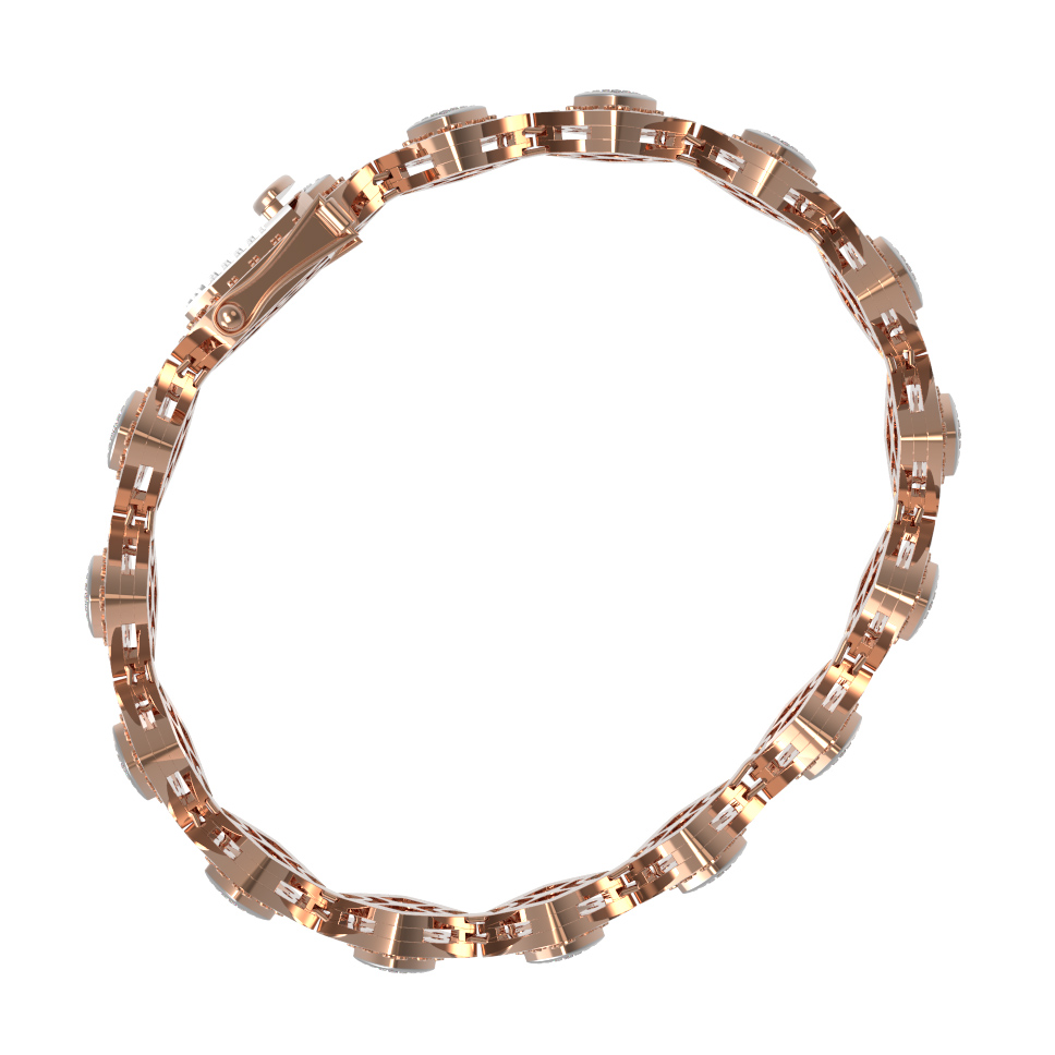 Роскошный браслет из коллекции De Luxe Бриллианты — Quattro станет безупречным акцентом вашего образа, подчеркивая утонченный вкус и статус. Это ювелирное изделие, созданное для тех, кто ценит сочетание классической элегантности и яркого дизайна. Браслет выполнен из красного золота 585 пробы, чей теплый оттенок гармонично обрамляет игру драгоценных камней.