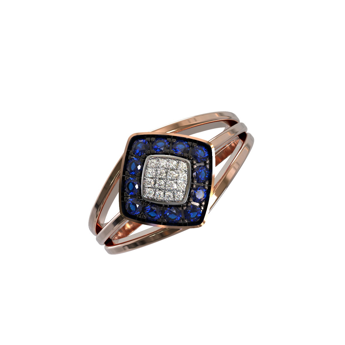 Кольцо из красного золота 585 пробы — это изысканное сочетание благородного металла и драгоценных камней, представляющее собой воплощение безупречного стиля коллекции De Luxe Бриллианты — Quattro. Дизайн изделия строится вокруг эффектного контраста: насыщенный теплый оттенок золота гармонично дополняется глубоким синим цветом сапфиров и сиянием белых бриллиантов. В центре композиции расположена квадратная площадка, инкрустированная сверкающими бриллиантами, которая обрамлена эффектной дорожкой из синих сапфиров. Всего в украшении использовано 28 вставок круглой формы, что создает роскошную игру света и объема.