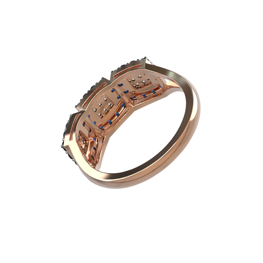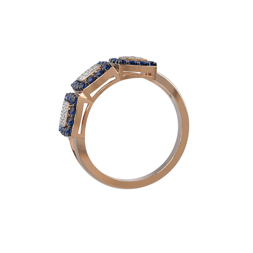 Дизайн украшения построен на контрасте: теплый блеск красного золота эффектно оттеняет холодную чистоту белых бриллиантов и глубину синих сапфиров. Всего изделие насчитывает 63 вставки круглой формы, которые создают завораживающую игру света при каждом движении руки. Такое сочетание делает аксессуар выразительным и притягательным.