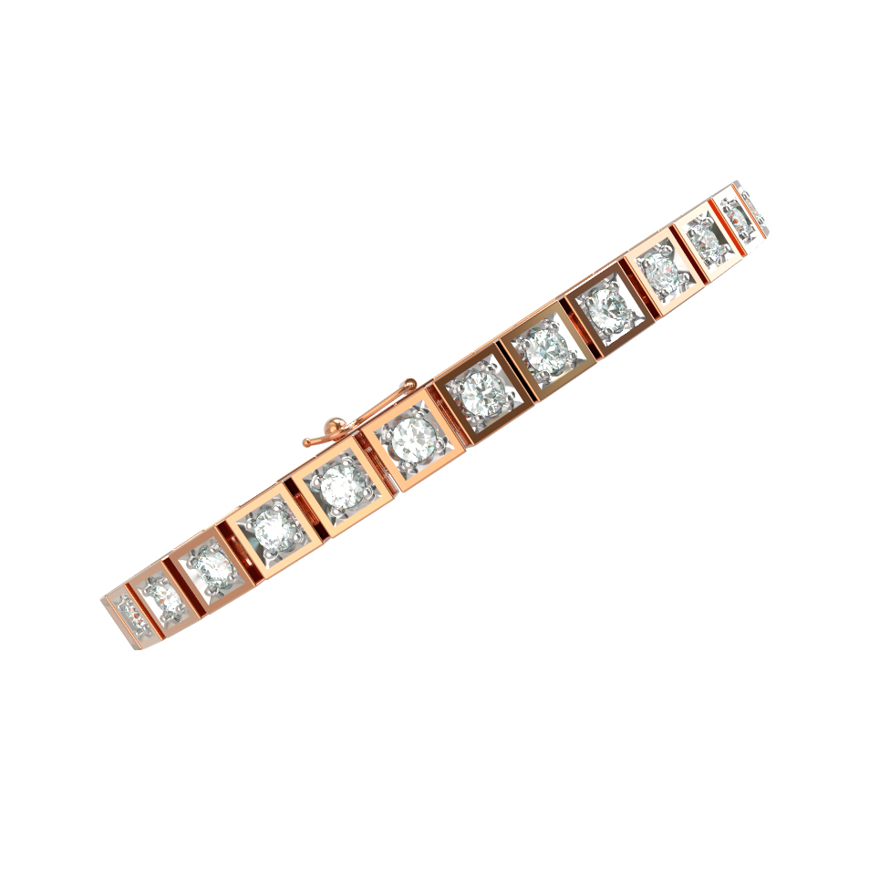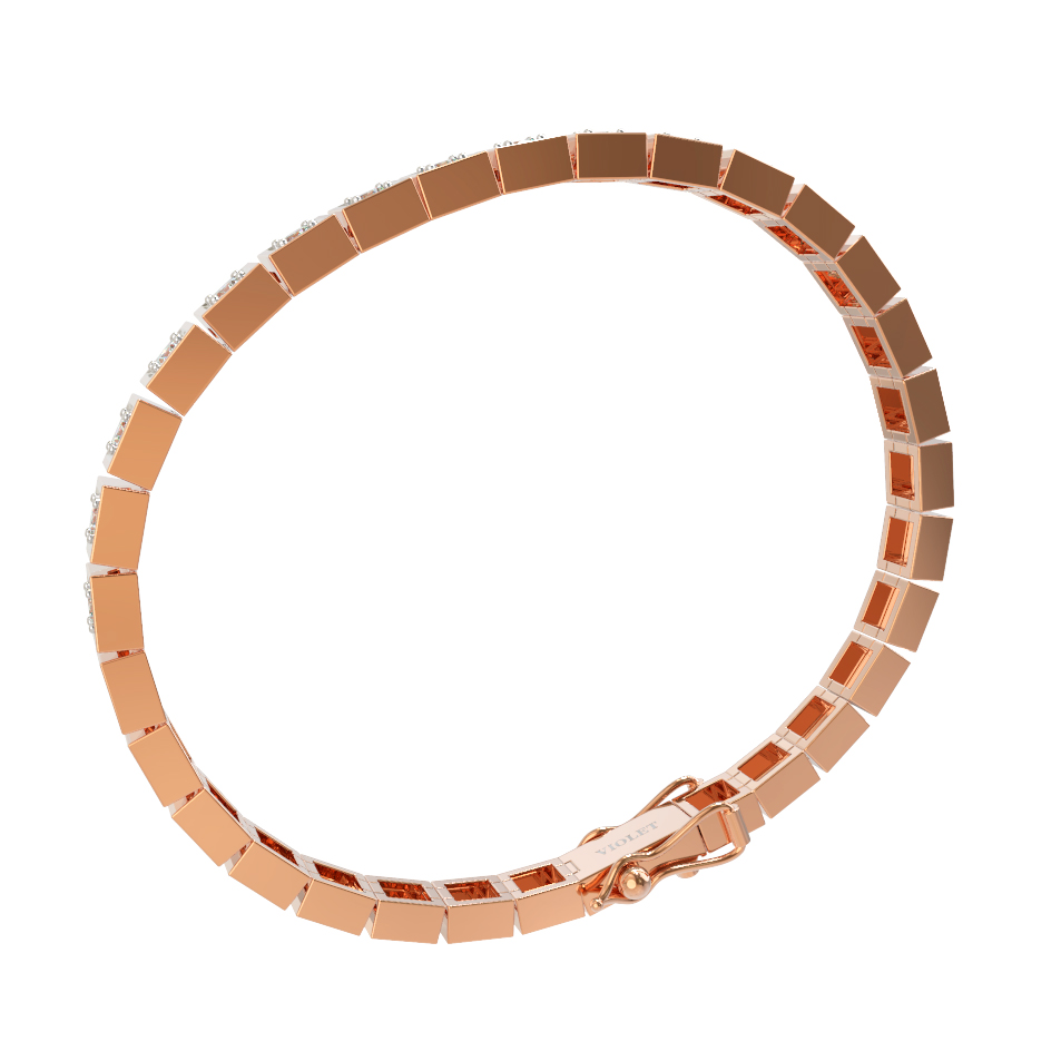 Изысканный браслет из красного золота 585 пробы из коллекции De Luxe Бриллианты — Quattro воплощает собой статус и безупречный вкус. Ювелирное украшение выполнено в лаконичном геометрическом дизайне, где каждое звено представляет собой миниатюрную оправу для драгоценного камня. Теплый оттенок металла идеально гармонирует с холодным блеском вставок, создавая яркий контраст и притягивая взгляды.