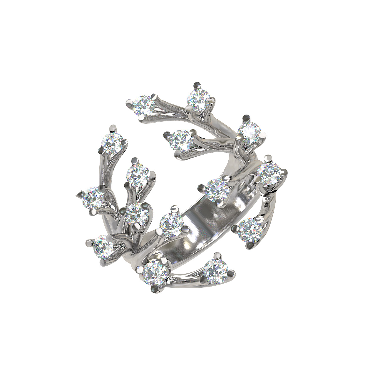 Элегантное кольцо из белого золота 585 пробы из коллекции De Luxe Бриллианты — Feuerwerk станет безупречным акцентом вашего образа. Дизайн украшения вдохновлен природными мотивами: две изящные ветви, устремленные навстречу друг другу, создают эффект легкости и естественной грации. Белый цвет металла придает изделию холодный, благородный блеск, подчеркивая статус и утонченность его владельца.