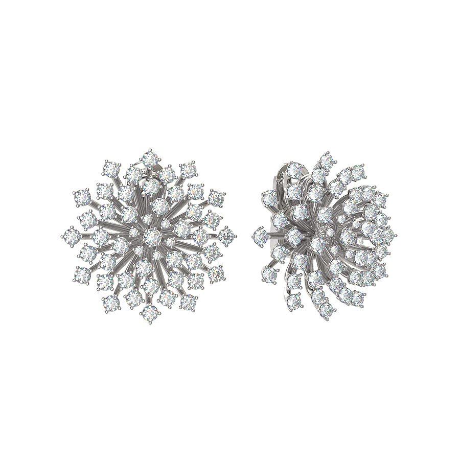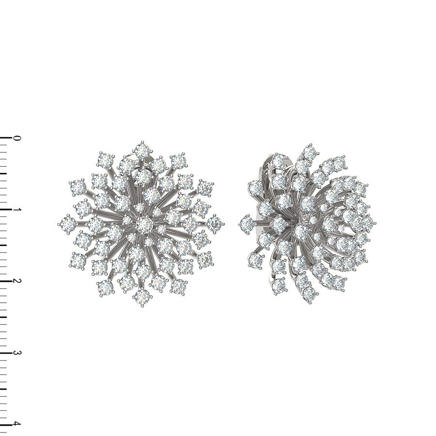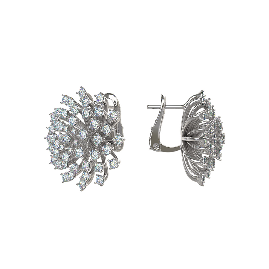 Центральным элементом композиции являются 98 драгоценных вставок — безупречных бриллиантов круглой огранки. Белые камни гармонично сочетаются с холодным оттенком металла, создавая невероятную игру света при каждом вашем движении. Ювелиры использовали классическую оправу, чтобы максимально раскрыть сияние каждого бриллианта, превращая серьги в настоящий шедевр ювелирного искусства.