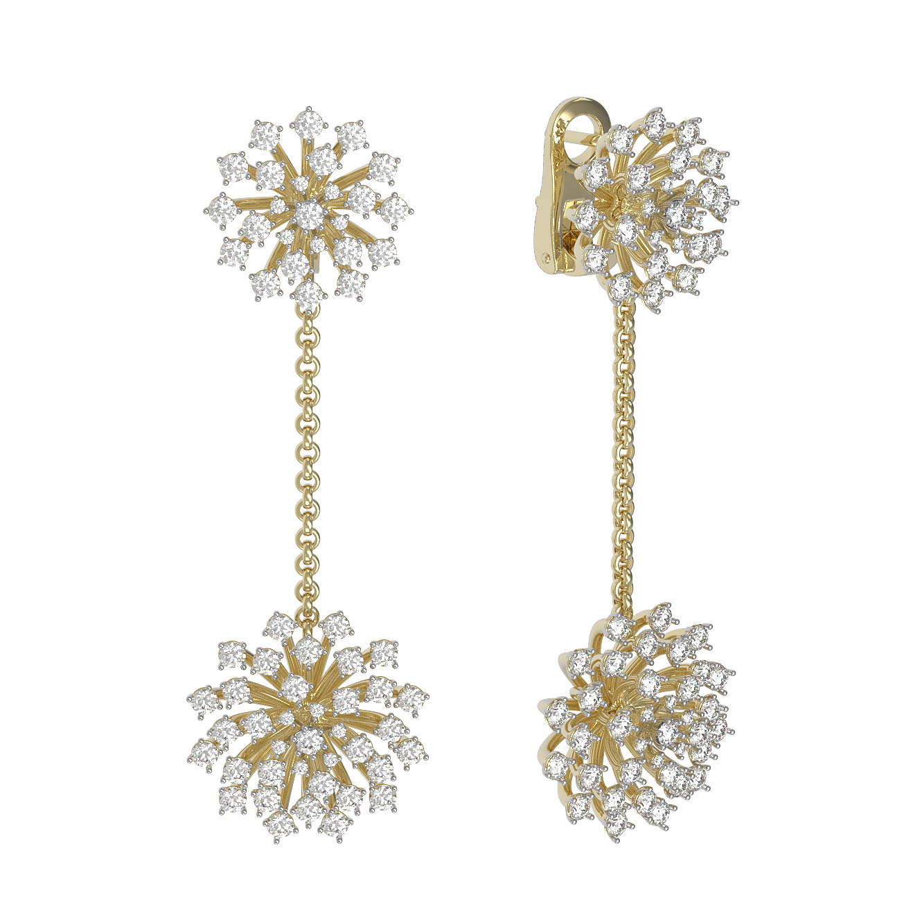Эффектные длинные серьги из лимонного золота 585 пробы станут воплощением роскоши в вашем образе. Эти украшения из коллекции De Luxe Бриллианты — Feuerwerk притягивают взгляд своим сложным дизайном, напоминающим распускающиеся цветы или вспышки праздничного салюта. Изящная цепочка соединяет верхнюю часть изделия с подвижным подвесным элементом, создавая красивую динамику при каждом вашем движении. Благородный оттенок лимонного золота гармонично подчеркивает блеск вставок.