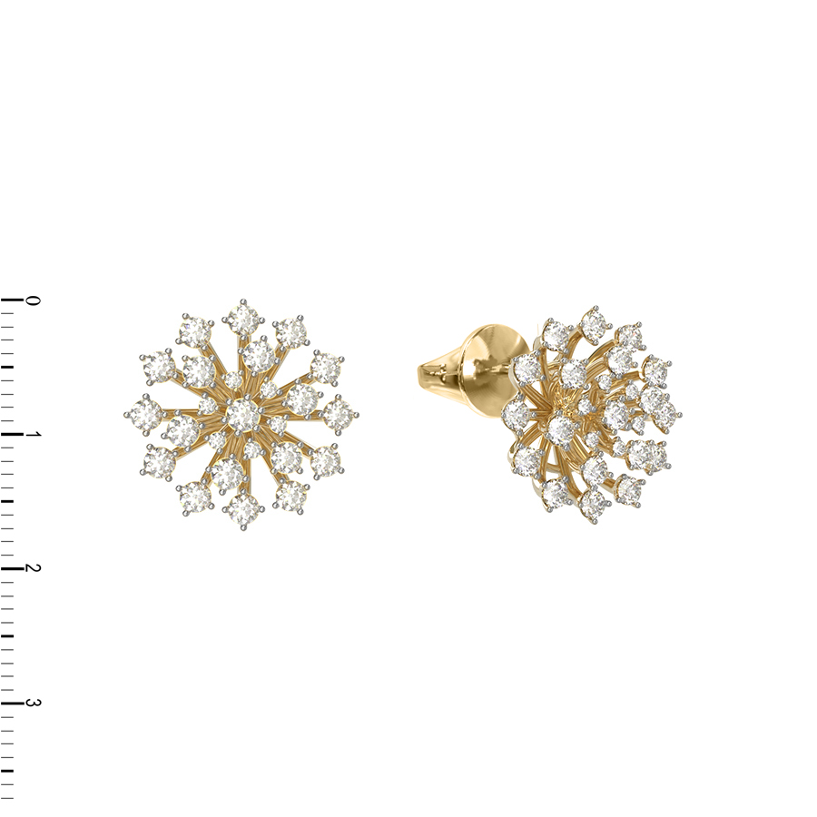 Роскошные серьги из лимонного золота 585 пробы из коллекции De Luxe Бриллианты — Feuerwerk воплощают в себе безупречное сочетание ювелирного мастерства и современного дизайна. Дизайн изделия напоминает ослепительные брызги праздничного фейерверка, которые притягивают взгляд и создают атмосферу торжества в каждом движении. Лимонное золото, отличающееся своим благородным, теплым оттенком, служит идеальной оправой для центрального элемента украшения.