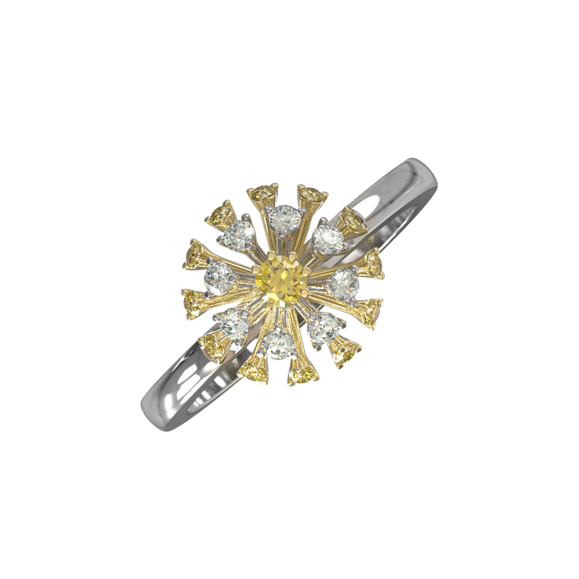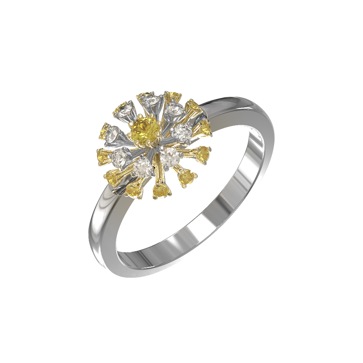 Кольцо из белого золота 585 пробы из коллекции De Luxe Бриллианты — Ease представляет собой воплощение ювелирного мастерства, вдохновленного природными мотивами. Дизайн украшения, напоминающий распускающийся бутон или фейерверк, притягивает взгляд своей динамичностью и искусной игрой фактур. Центральная композиция украшена 21 бриллиантом круглой огранки, которые создают завораживающее сияние, подчеркивая благородный холодный оттенок металла.
