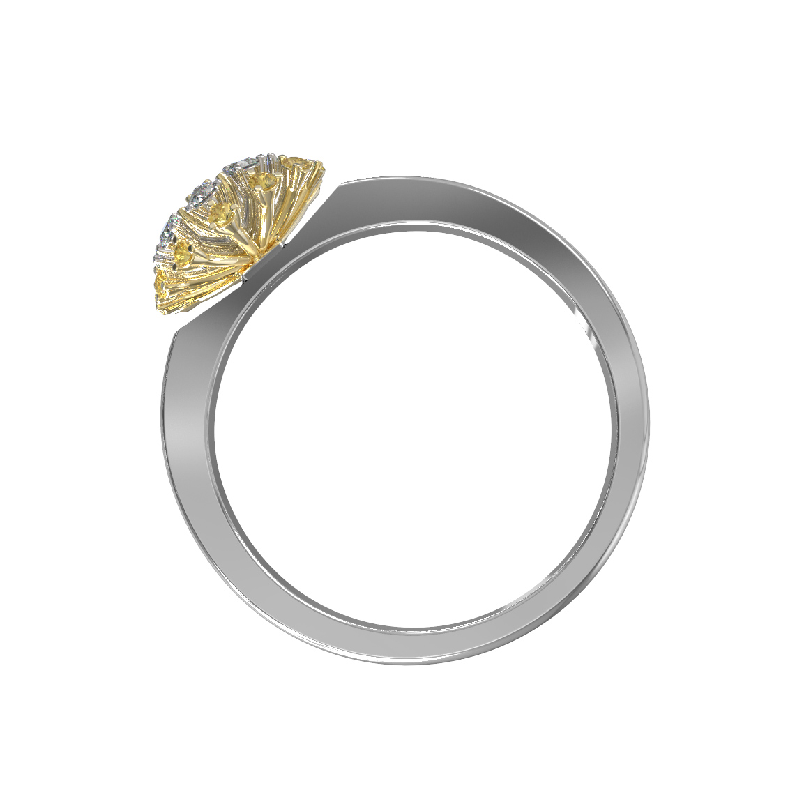 Особую выразительность изделию придает сочетание классического белого золота с интригующими желтыми вставками, что создает эффектный контраст и глубину. Такое украшение станет ярким акцентом в образе, подчеркивая статус и безупречный вкус владельца. Кольцо выполнено с вниманием к деталям, поэтому оно комфортно в носке и идеально подойдет как женщинам, так и мужчинам, предпочитающим утонченные аксессуары.