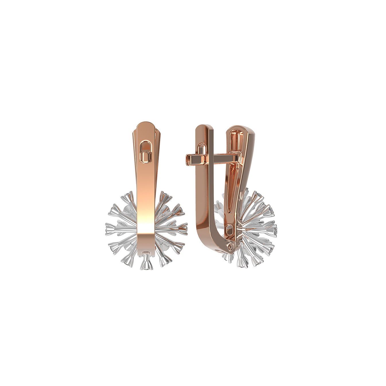 Центральным элементом композиции выступают 42 бриллианта круглой огранки. Белый цвет вставок эффектно выделяется на фоне золотой основы, создавая завораживающую игру света при каждом движении. Общее количество камней подчеркивает торжественность и значимость украшения. Надежный замок обеспечивает комфортную фиксацию, позволяя носить серьги как в повседневной жизни, так и по особому случаю. Это украшение станет великолепным подарком для ценителей эксклюзивных ювелирных изделий, а при желании его можно дополнить другими элементами, составив стильные комплекты из нашего ассортимента.